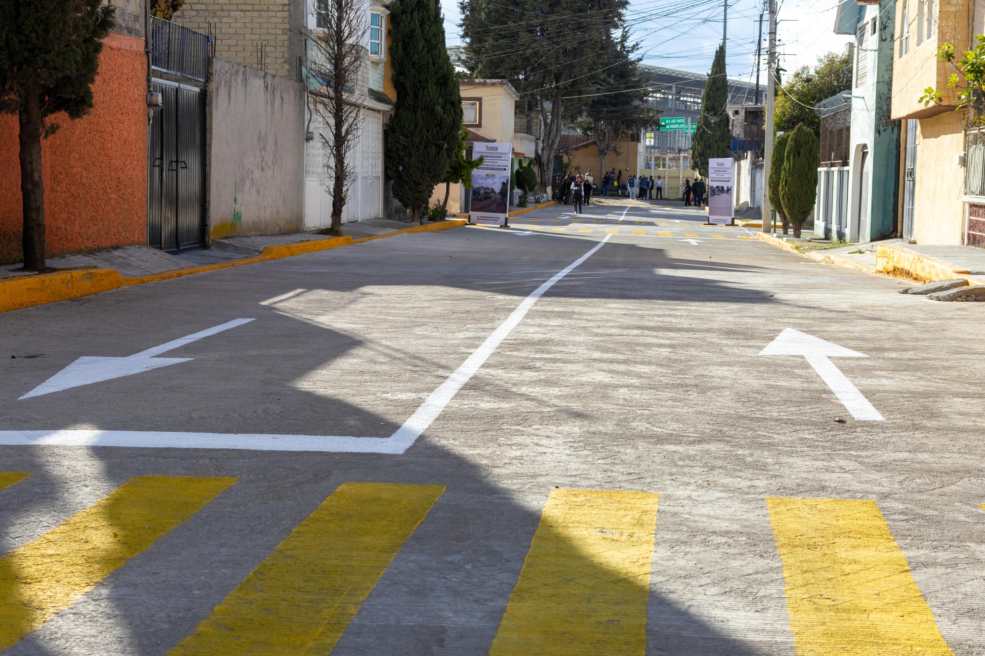 La primera entrega correspondió a la pavimentación de concreto ecológico en la calle Parque Nevado de Toluca, en el tramo comprendido entre Parque de los Remedios y Parque José María Velasco, en la colonia Parques Nacionales 2, beneficiando a cerca de 6 mil habitantes, principalmente comerciantes establecidos en la zona.