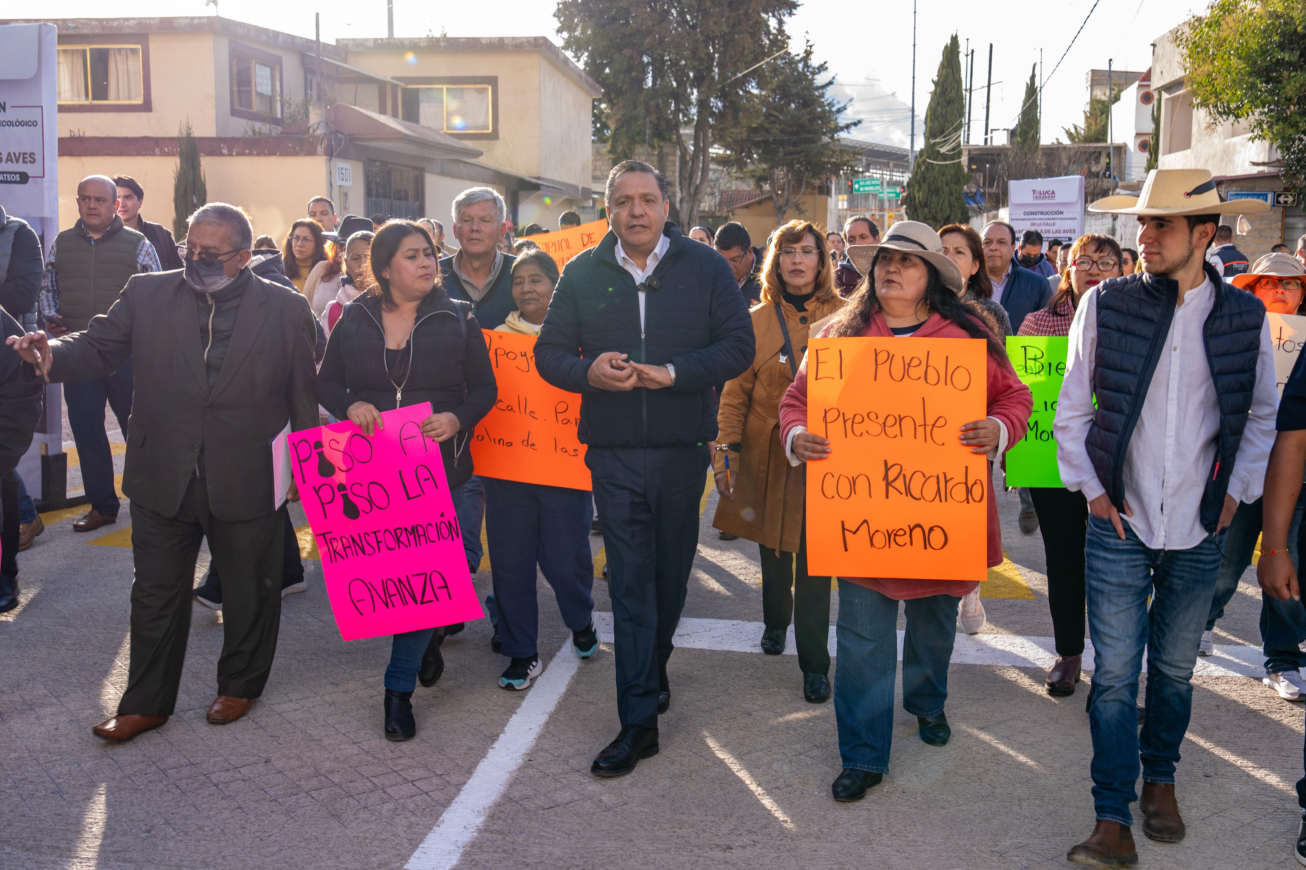 Toluca, Estado de México, 22 de enero de 2026.- En beneficio de cientos de familias toluqueñas, el Presidente Municipal de Toluca, Ricardo Moreno, entregó la pavimentación de tres importantes vialidades en la delegación Adolfo López Mateos, obras que mejoran la movilidad, elevan la calidad de vida y fortalecen la actividad económica de la zona.