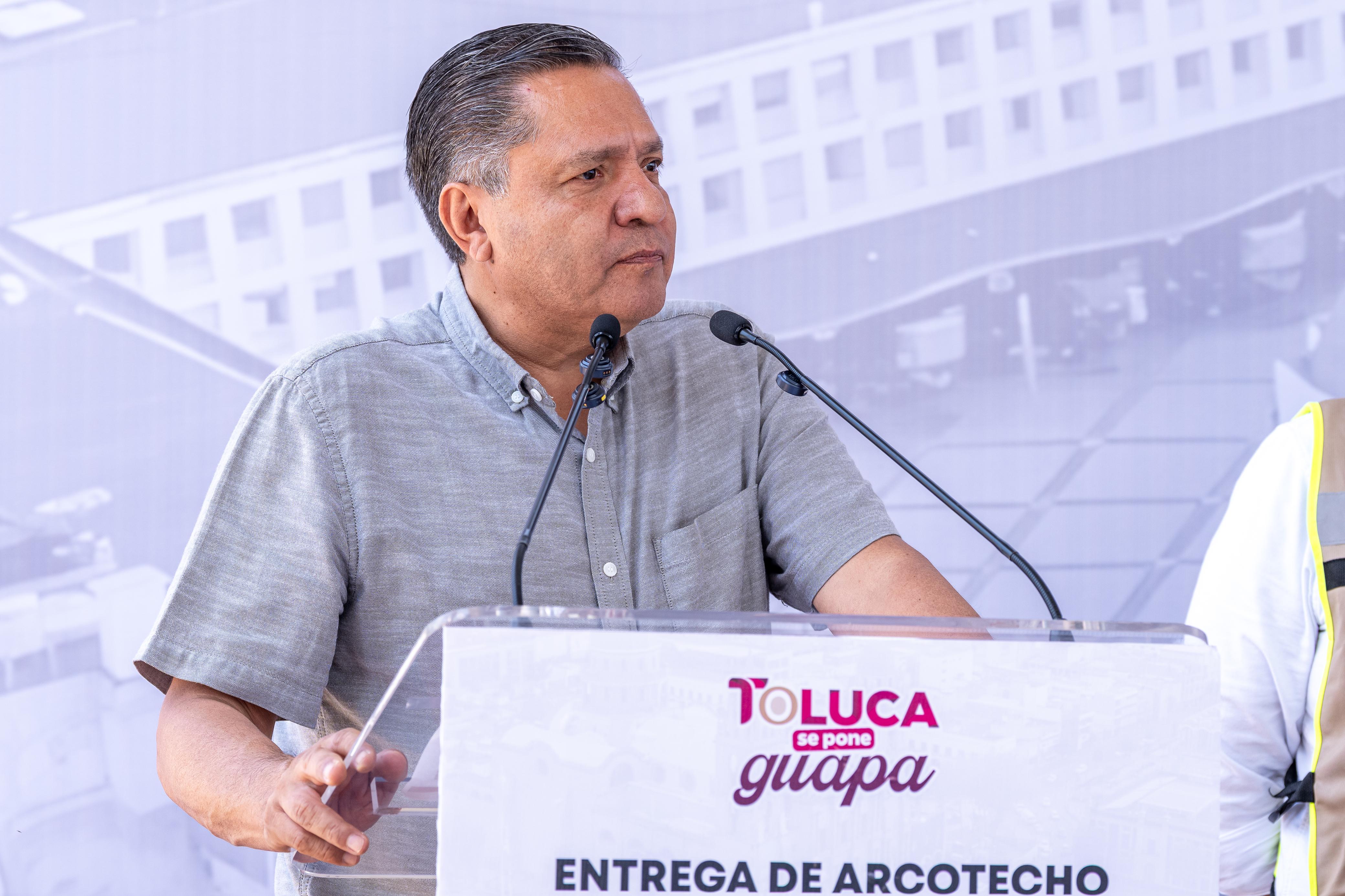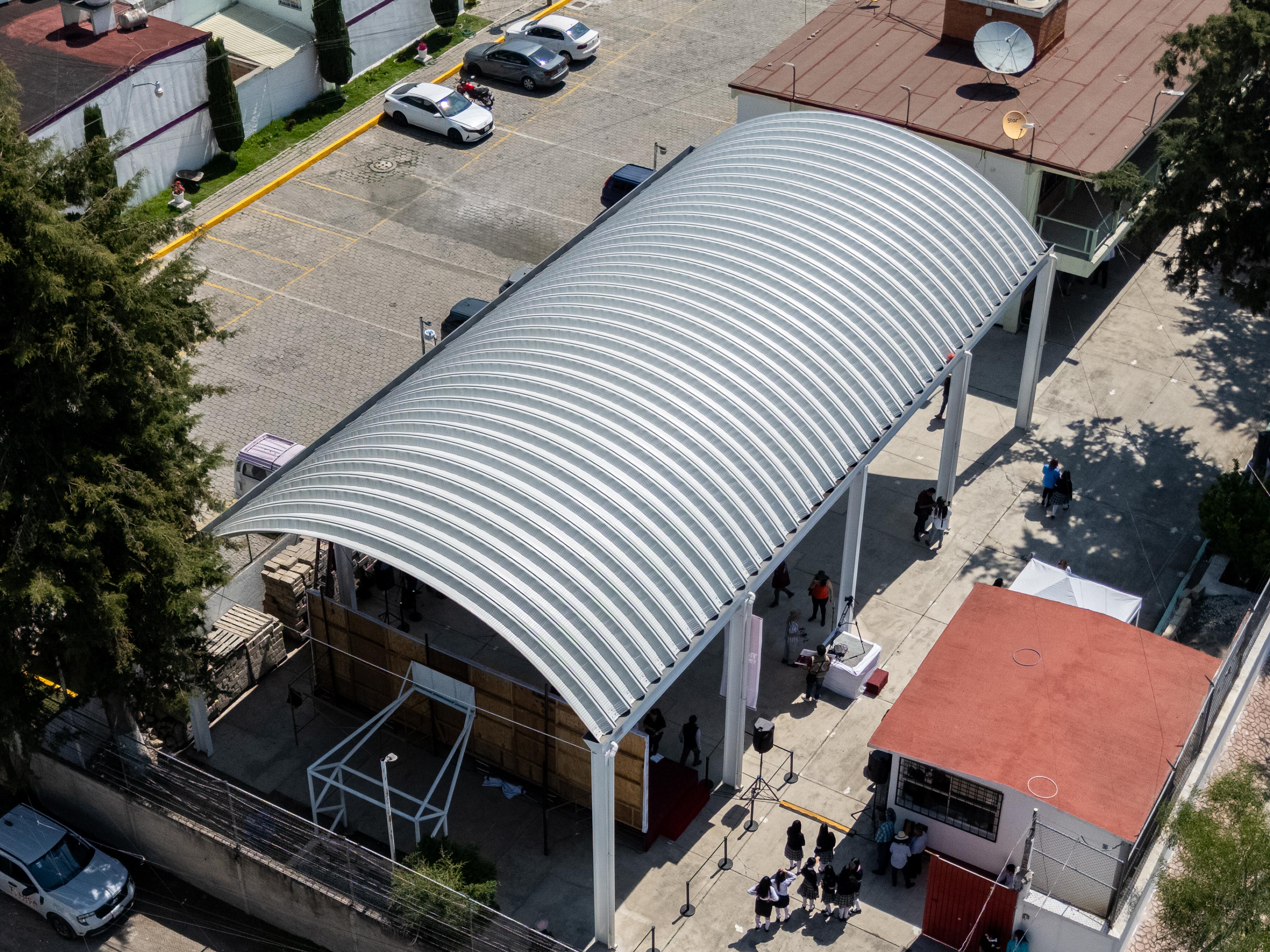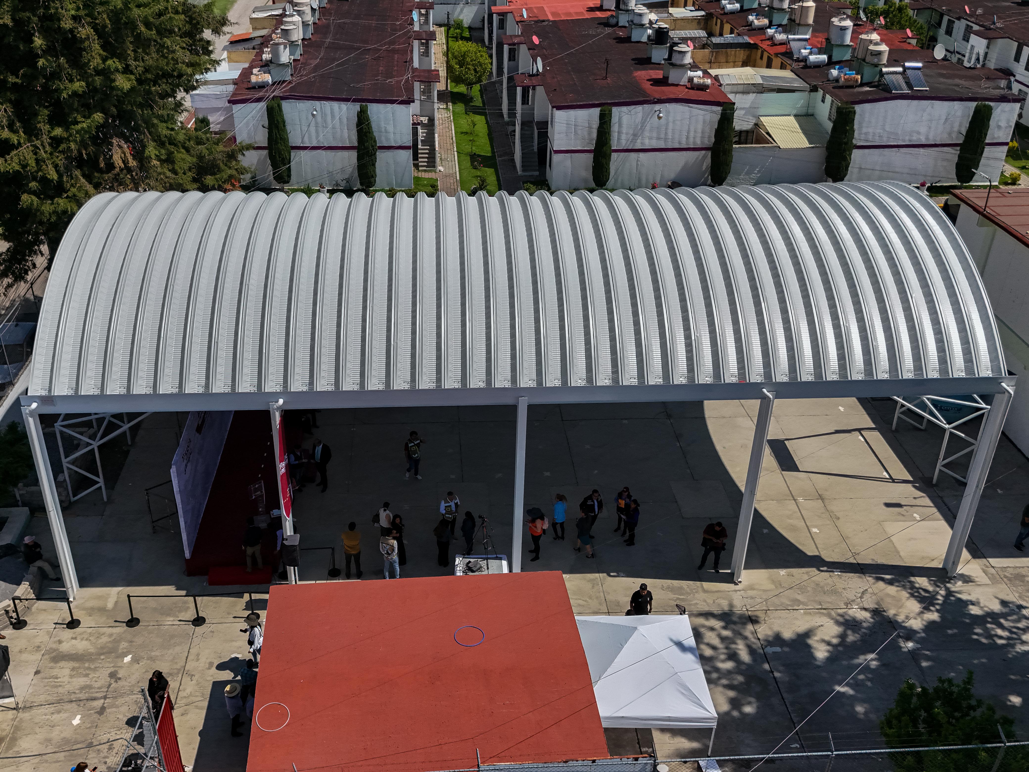 El arcotecho consta de un área de 297.168 m2, con una dimensión de 12.30 m de ancho por 24.36 m de largo; además, en esta oportunidad y como parte de “Toluca mundialista”, el alcalde entregó balones a la comunidad estudiantil.