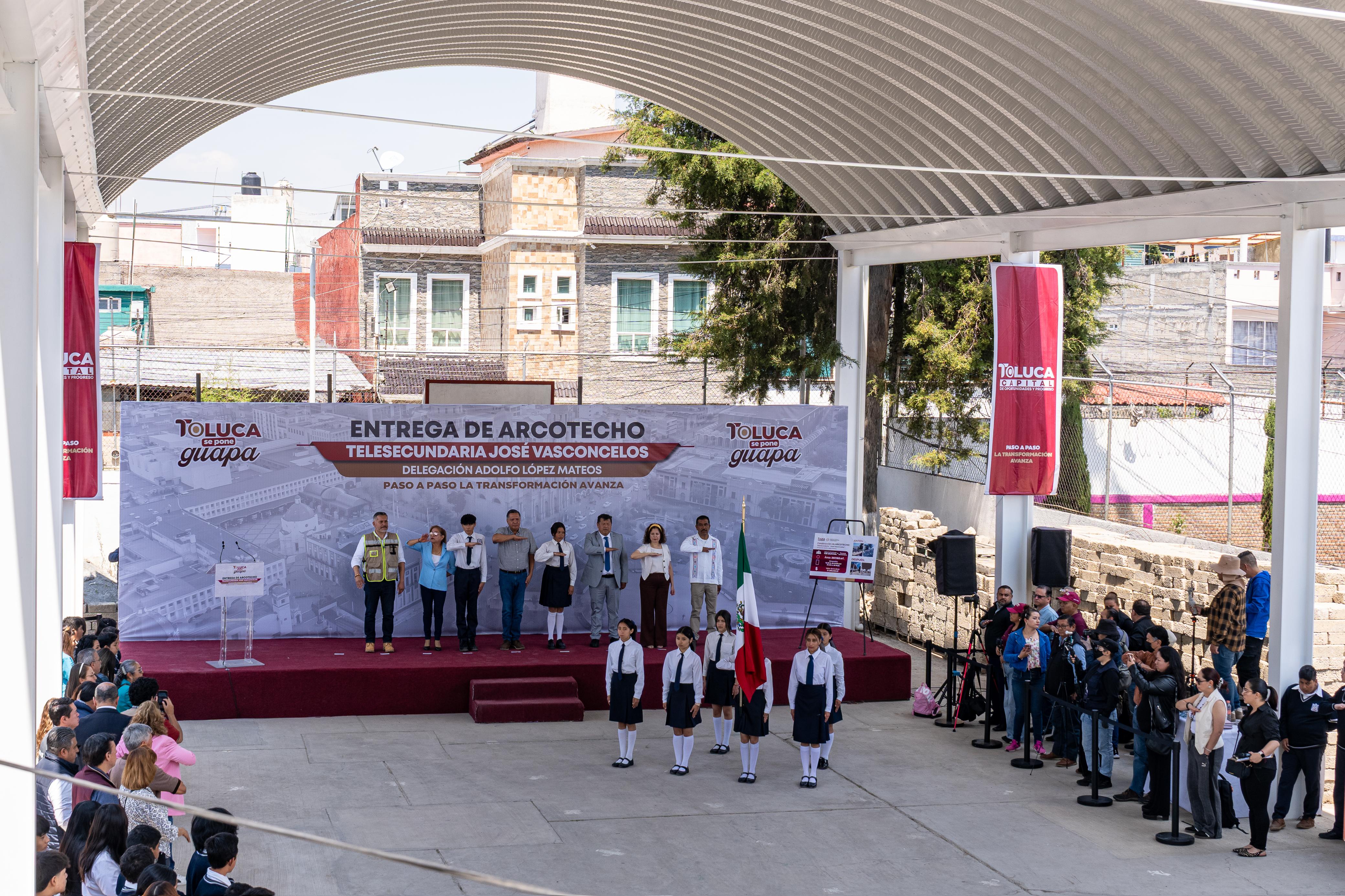 Después de 10 años de espera, las y los alumnos recibieron la obra en un ejercicio de transparencia de uso y aplicación de los recursos públicos por parte del alcalde Ricardo Moreno al reiterar que en Toluca no hay escuelas de primera ni de segunda, pues todas son iguales y afirmó que se entregará en breve, otro arcotecho para favorecer las actividades escolares.