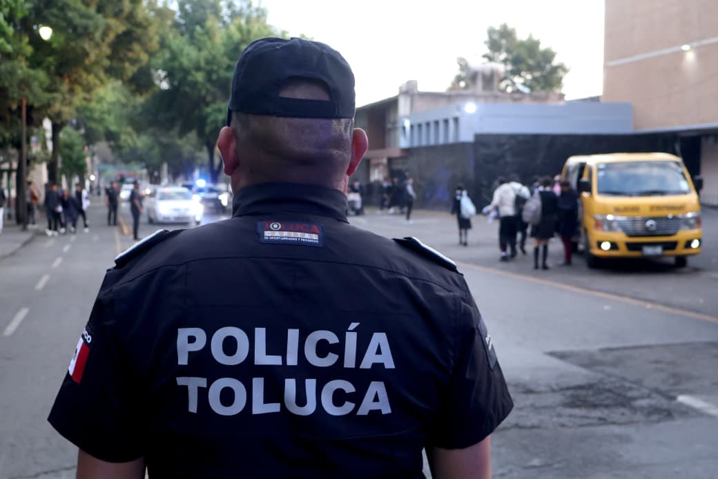 Toluca, Estado de México, 13 de abril de 2026.- Con el despliegue de cerca de mil elementos, el Gobierno de Toluca activó un operativo de seguridad en planteles educativos por el regreso a clases tras el periodo vacacional de Semana Santa.