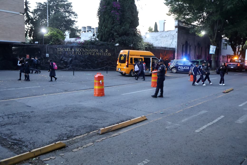 El dispositivo, como parte del programa “Escuela Segura”, se aplica en horarios de entrada y salida, con presencia en accesos y vialidades aledañas, además de monitoreo permanente a través de cámaras de videovigilancia.