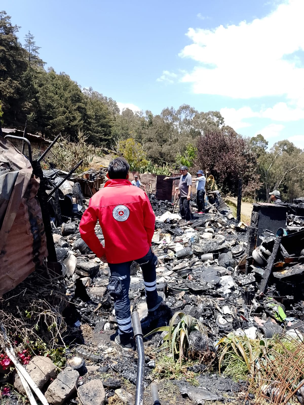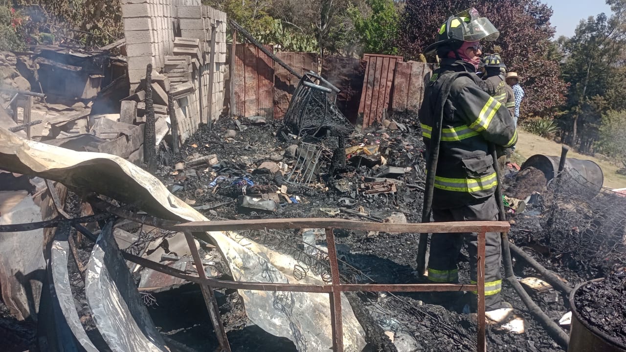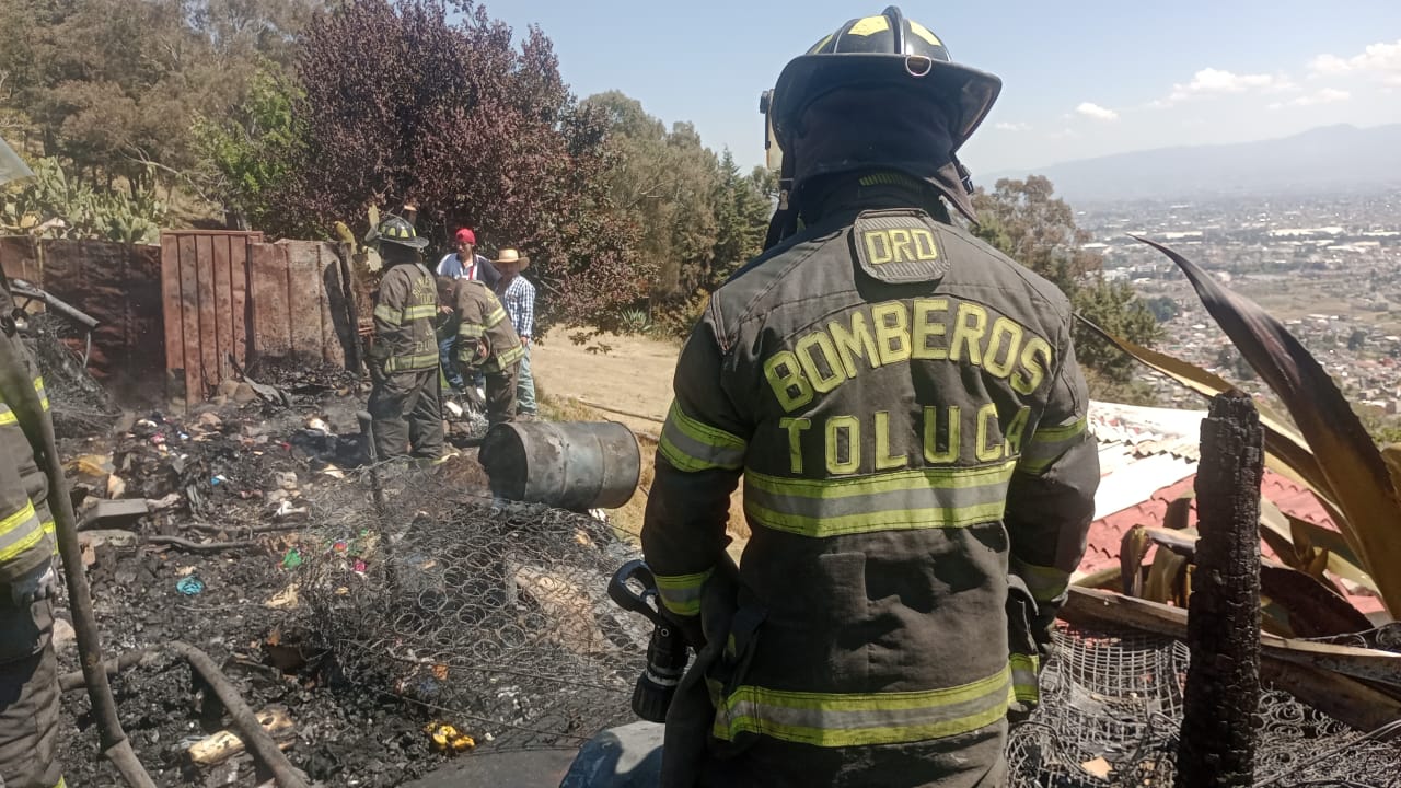 El siniestro, ocurrido en una casa habitación construida con materiales de cartón y madera, dejó como saldo cuatro personas lesionadas y la pérdida total del inmueble, por lo cual, elementos de Protección Civil y Bomberos de Toluca brindaron atención prehospitalaria a dos masculinos, de los cuales uno presentaba herida lacerante en el dedo anular derecho y otro intoxicación por inhalación de humo, asimismo atendieron a una adulta mayor por crisis hipertensiva.