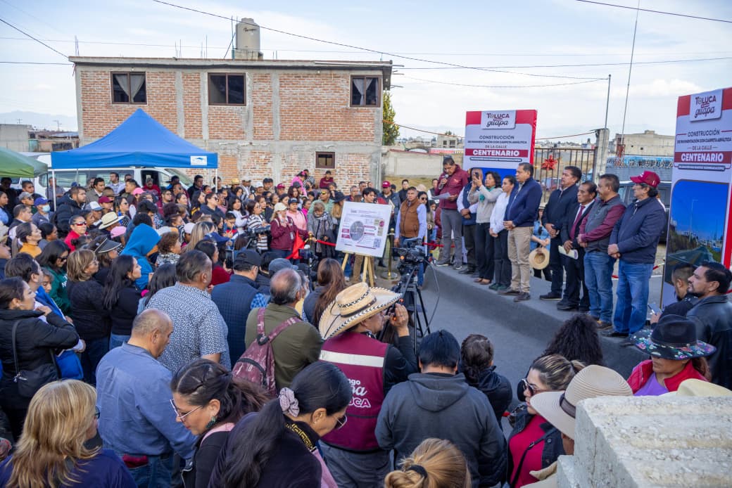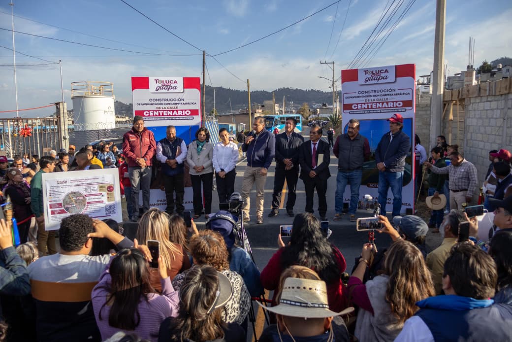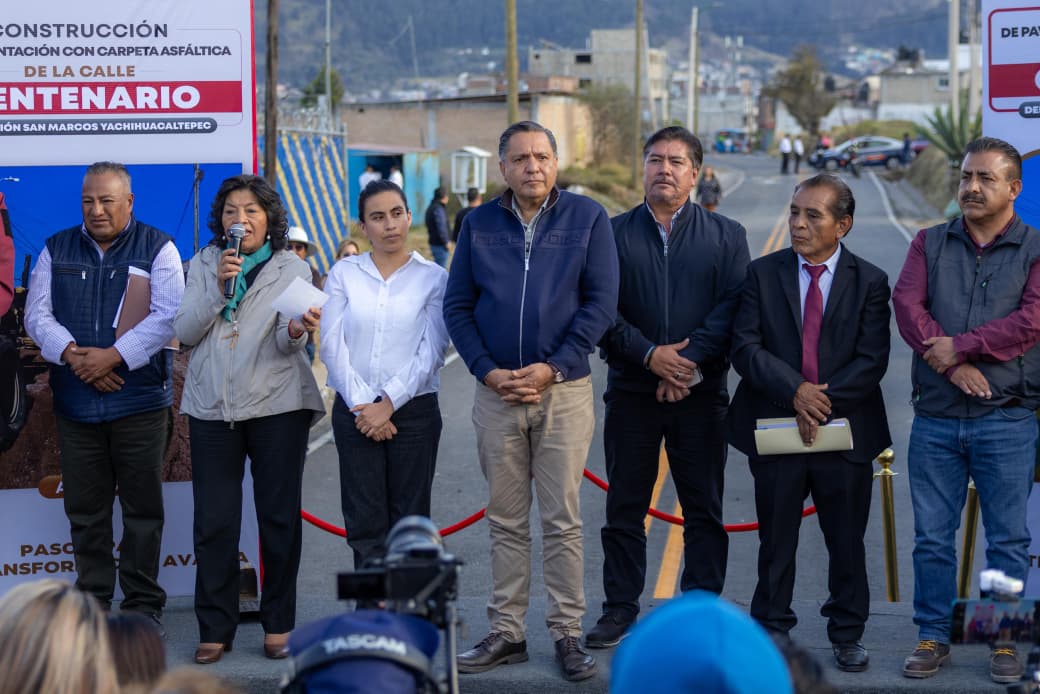 Toluca, Estado de México, 30 de enero de 2026.- Más de 10 mil personas que viven y transitan diariamente por San Marcos Yachihuacaltepec y Calixtlahuaca se beneficiaron con la pavimentación con carpeta asfáltica de la calle Centenario, inaugurada por el Presidente Municipal,  Ricardo Moreno, como parte de su compromiso de elevar la calidad de vida de las familias.