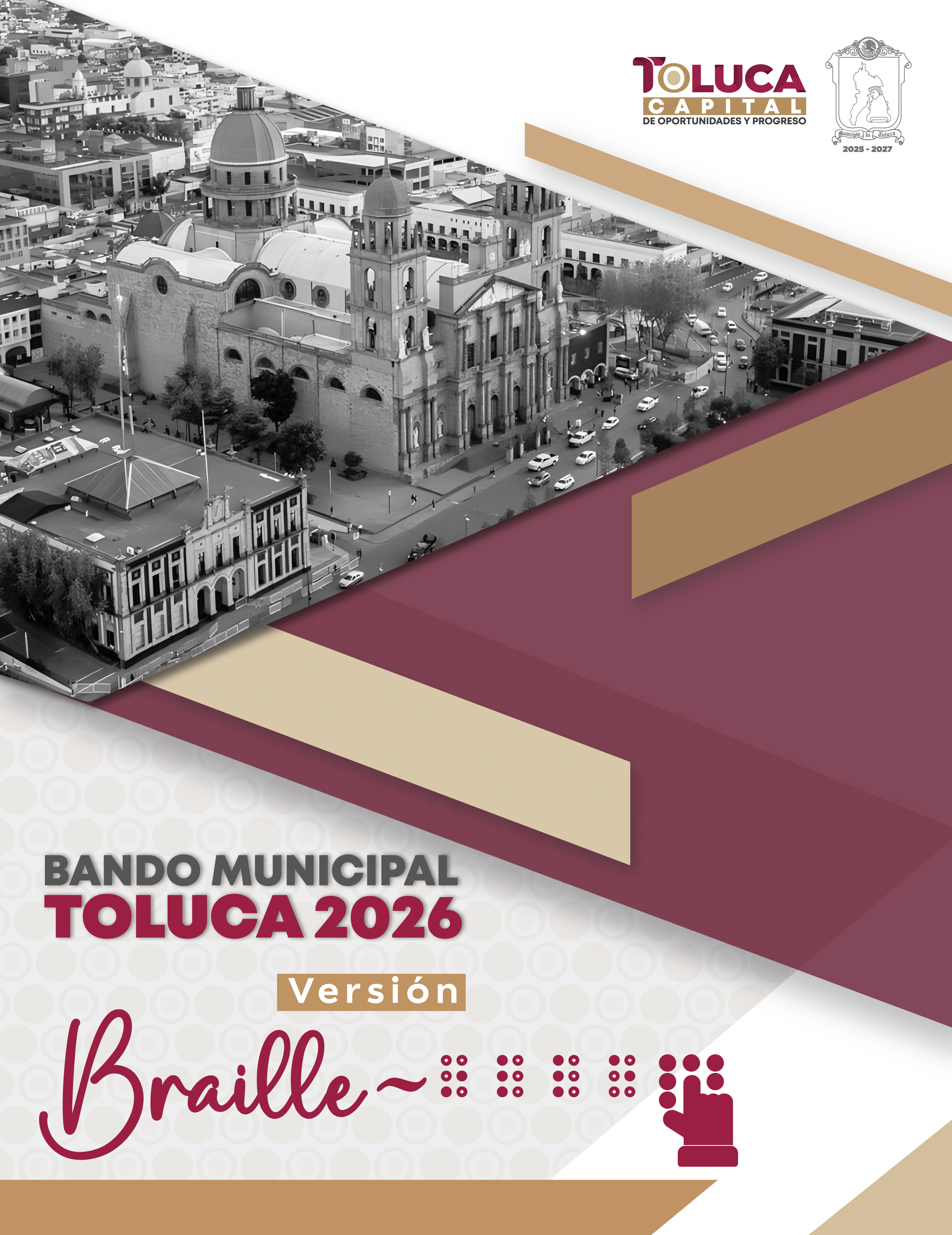 El Bando Municipal 2026, en su versión Braille, se encuentra a su disposición en las oficinas de la Secretaría del Ayuntamiento, ubicadas en la planta baja del Palacio Municipal (Av. Independencia 207, Centro, C.P. 50000 Toluca de Lerdo).