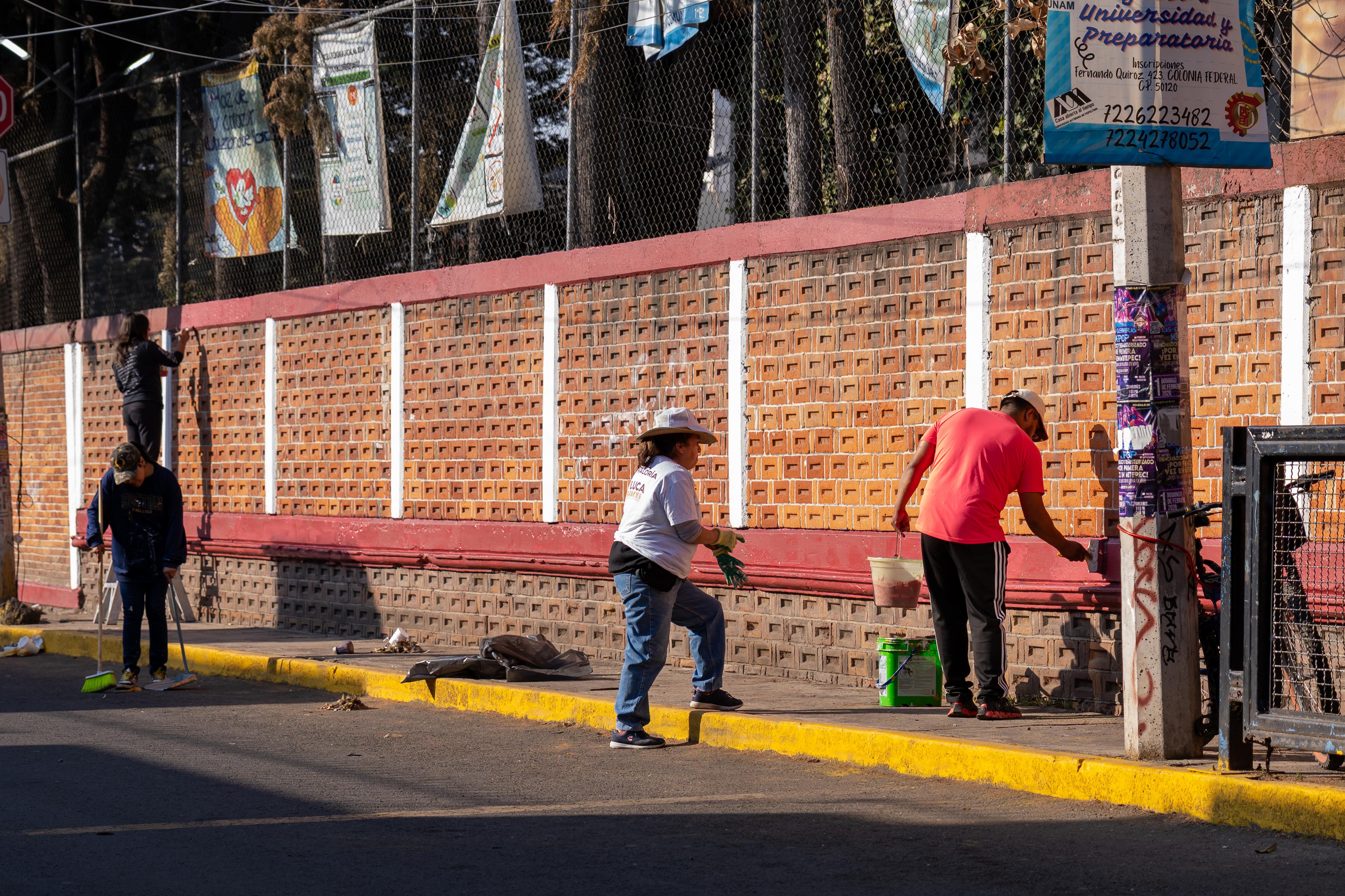 Estudiantes, padres de familia y servidores públicos se concentraron en estos varios puntos para barrer, limpiar, deshierbar, podar, pintar y embellecer calles, escuelas y espacios públicos de la capital mexiquense.