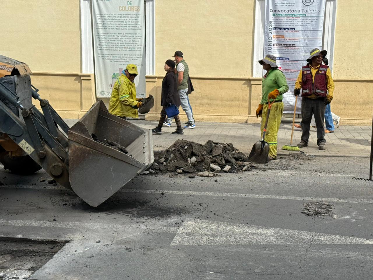 Durante los últimos días, las cuadrillas municipales de la Dirección General de Obra Pública realizaron trabajos de bacheo en distintas delegaciones, entre ellas San Cristóbal Huichochitlán, en la calle Nicolás Bravo; San Pablo Autopan, con las vialidades de Constituyentes, Alejandro Humboldt e Ignacio López Rayón; y San Pedro Totoltepec, con Ernesto Monroy, además de otras zonas priorizando aquellas con mayor flujo vehicular y reportes ciudadanos.