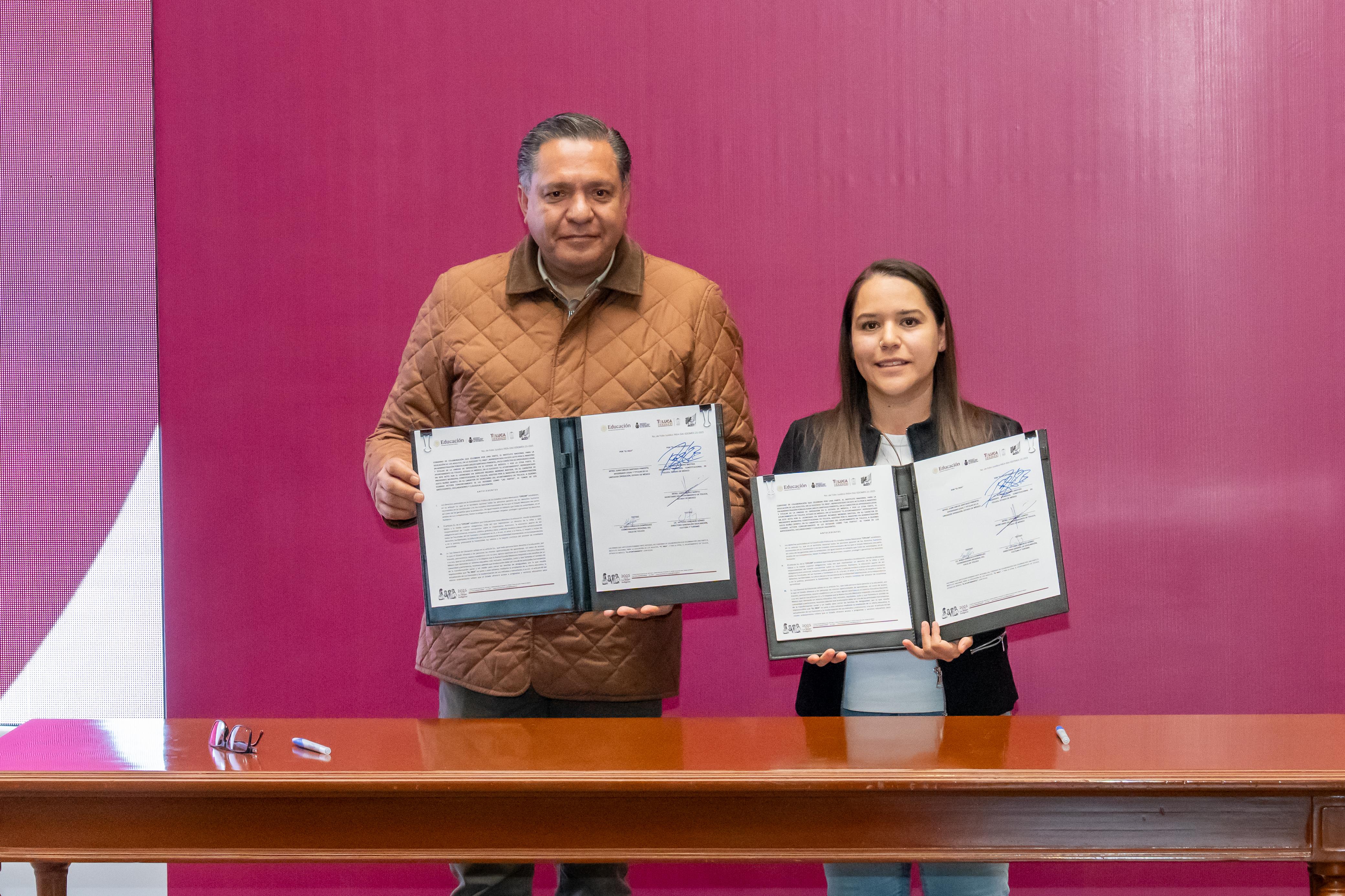 Toluca, Estado de México, 22 de enero de 2026.- El Presidente Municipal, Ricardo Moreno, junto con el Instituto Nacional para la Educación de los Adultos (INEA) firmaron un convenio de colaboración para acabar con el analfabetismo y el rezago educativo en Toluca.