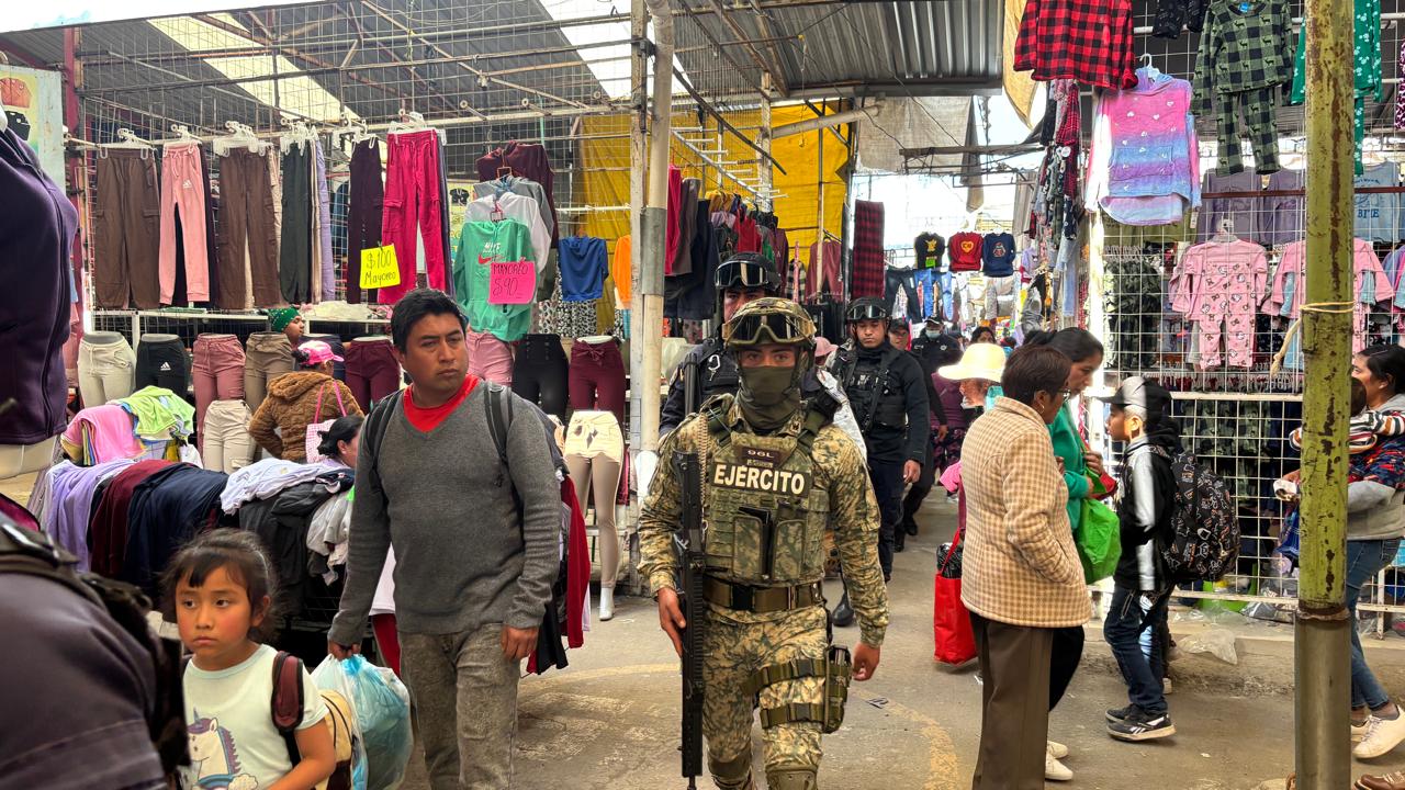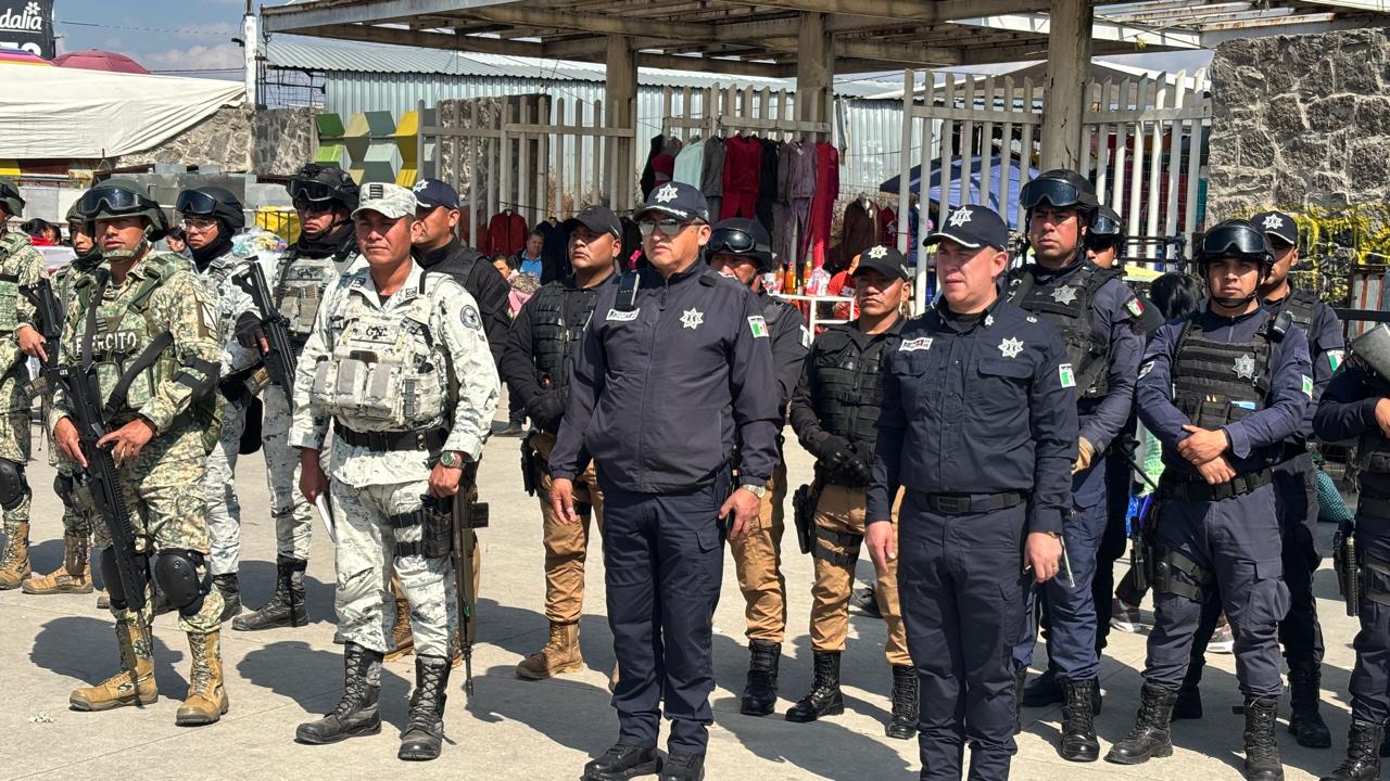 Toluca, Estado de México, 9 de enero de 2026.- Con un despliegue de 150 elementos de la Policía Municipal, en coordinación con la Guardia Nacional y el Ejército Mexicano, la Dirección General de Seguridad y Protección de Toluca implementó un operativo especial en el Mercado Palmillas Autopan, para proteger a comerciantes, compradores y visitantes.