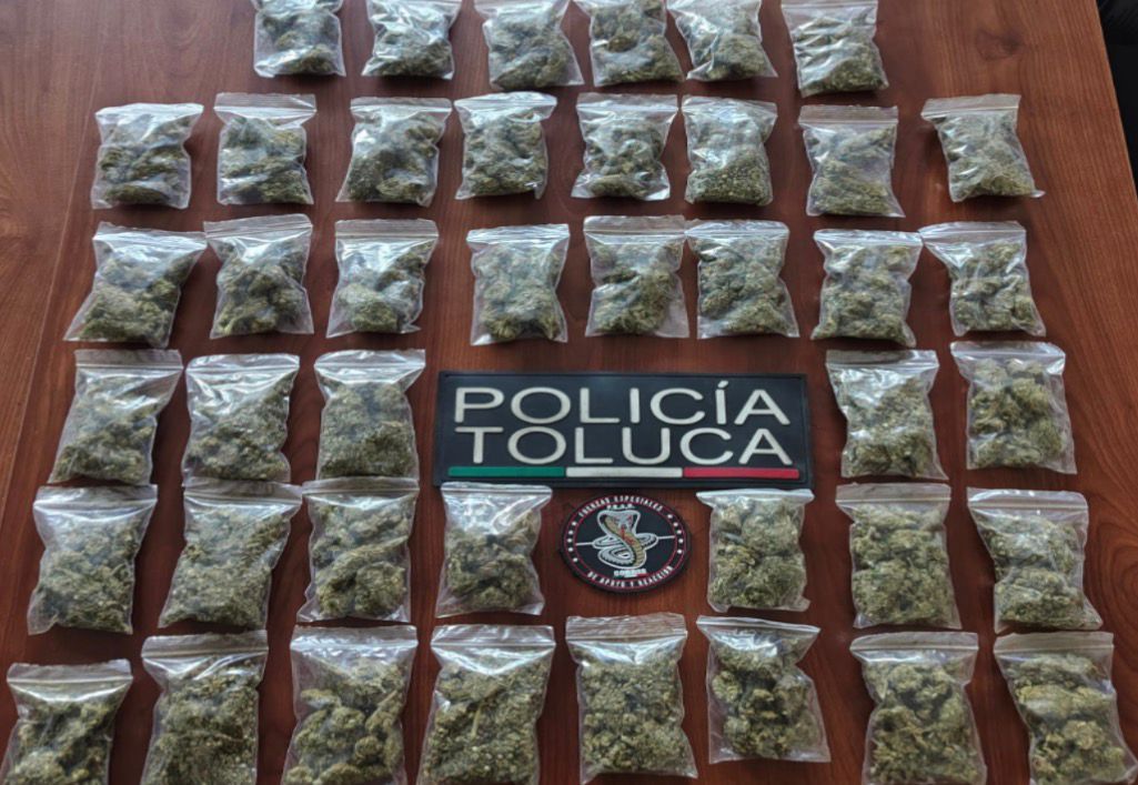 En otro hecho diferente ocurrido en la Colonia San Miguel Totoltepec, Jesús Fernando “N” fue detenido en posesión de 42 bolsas tipo ziploc que contenían hierba seca con características similares a la marihuana.
