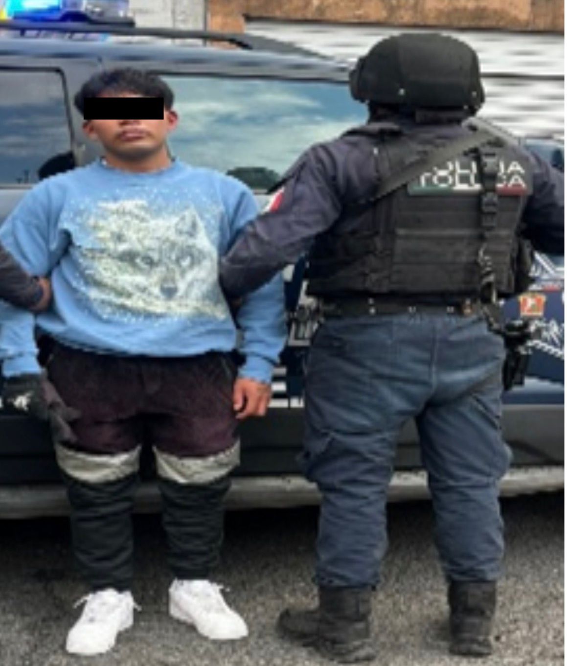 En la calle Francisco Villa, colonia Guadalupe Totoltepec, fue detenido Carlos “N”, de 38 años, en posesión de una motocicleta marca Italika, también sin placas y con reporte de robo.