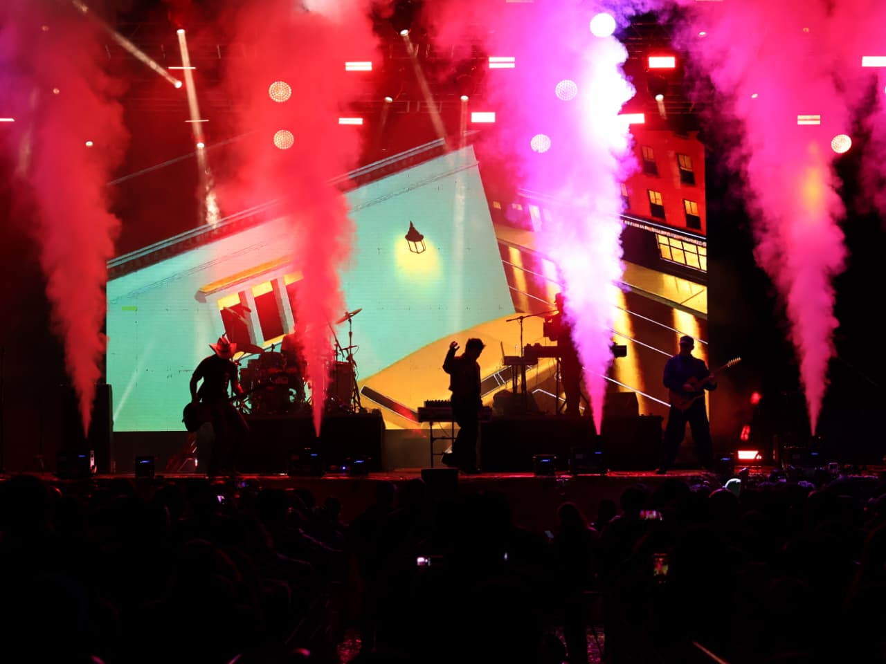 Entre aplausos y ovaciones, Kinky cantó “Me gustas por coqueta”, tema que la multitud coreó al unísono, seguido de una versión con tintes electrónicos de “Cómo te voy a olvidar” que puso a bailar a los asistentes.