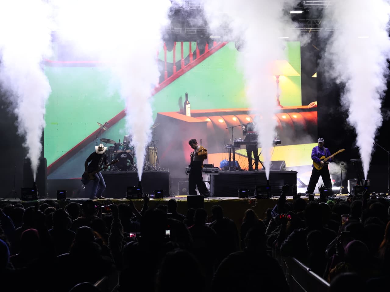 El repertorio incluyó éxitos como “El paso del gigante”, “Instintos animales”, “Soun Tha mi primer amor”, “El sonido de la casa”, “1x100to”, “Fuentes de Ortiz”, “Un línea de luz” y “Ejercicio No. 16”, “Sister Twisted”, piezas que mantuvieron el ambiente a pesar del frío.