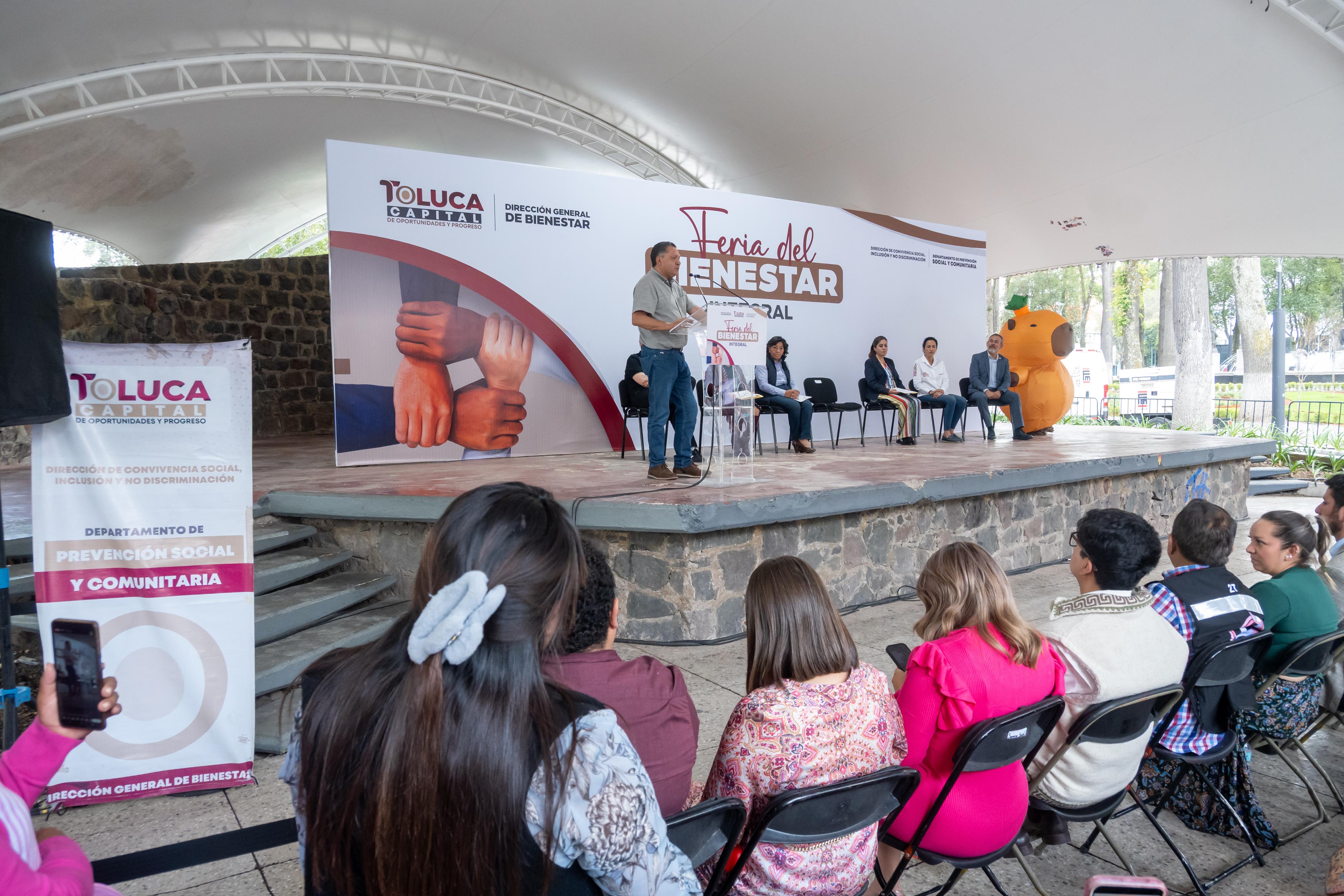 Toluca, Estado de México, 27 de abril de 2026.- El Presidente Municipal, Ricardo Moreno, encabezó la Feria del Bienestar Integral en la Alameda Central de Toluca, donde reafirmó que su administración coloca a las personas en el centro de las políticas públicas, al fortalecer la colaboración con asociaciones civiles y priorizar la salud emocional como eje fundamental del desarrollo social.