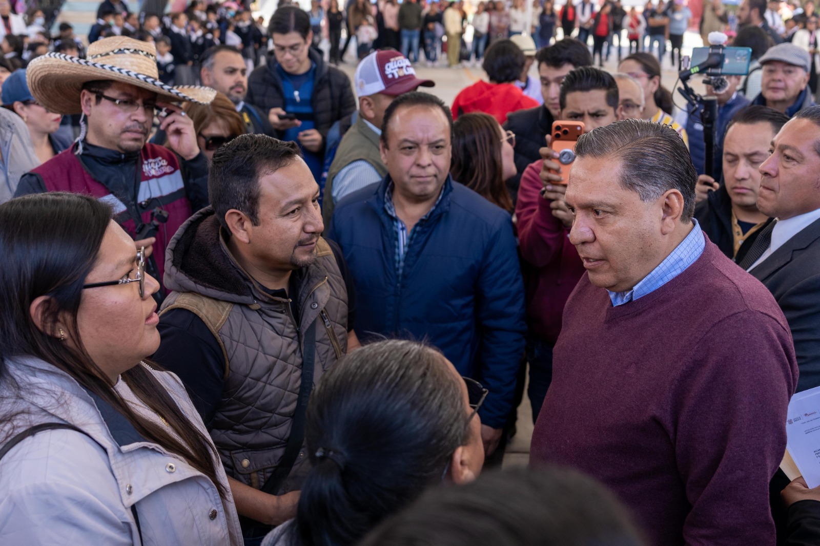 El alcalde adelantó que, como parte del compromiso del Gobierno municipal con la comunidad, se ampliará la red de alumbrado público en San Miguel Totoltepec y, a petición de los propios alumnos, quienes aceptaron el reto y se comprometieron estar entre las mejores 10 escuelas en aprovechamiento escolar, se construirá un comedor escolar.