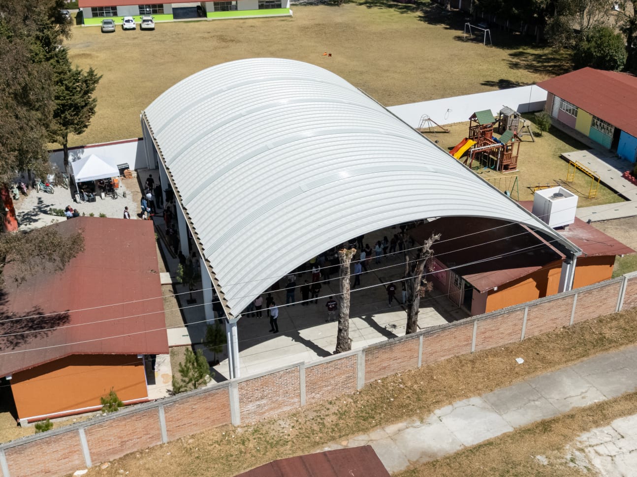 Además de cumplir la función básica de brindar sombra y protección contra las condiciones climatológicas, representan un valor agregado para las instituciones educativas, al consolidarlas como espacios de encuentro donde se pueden realizar actividades cívicas, culturales, deportivas y recreativas.