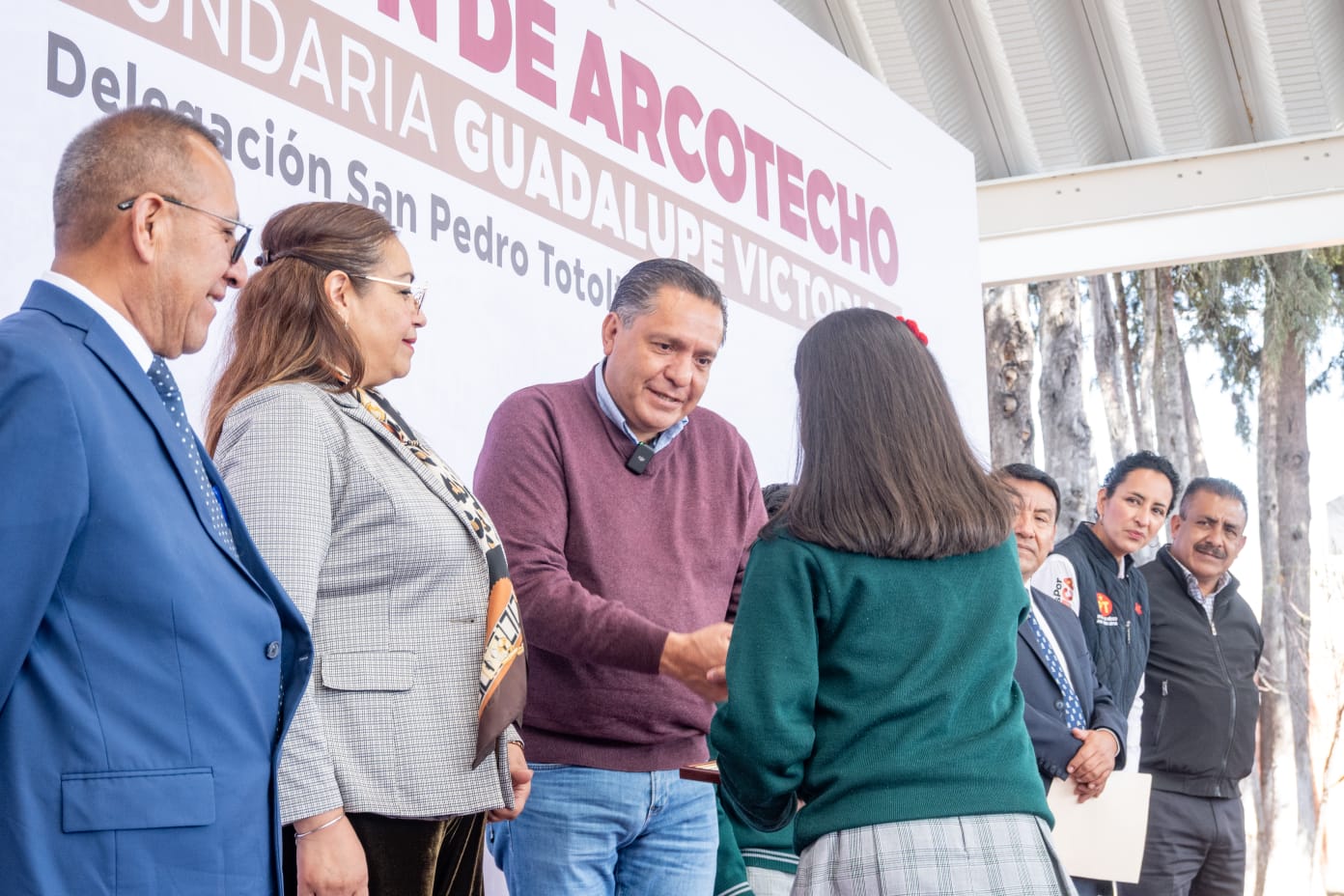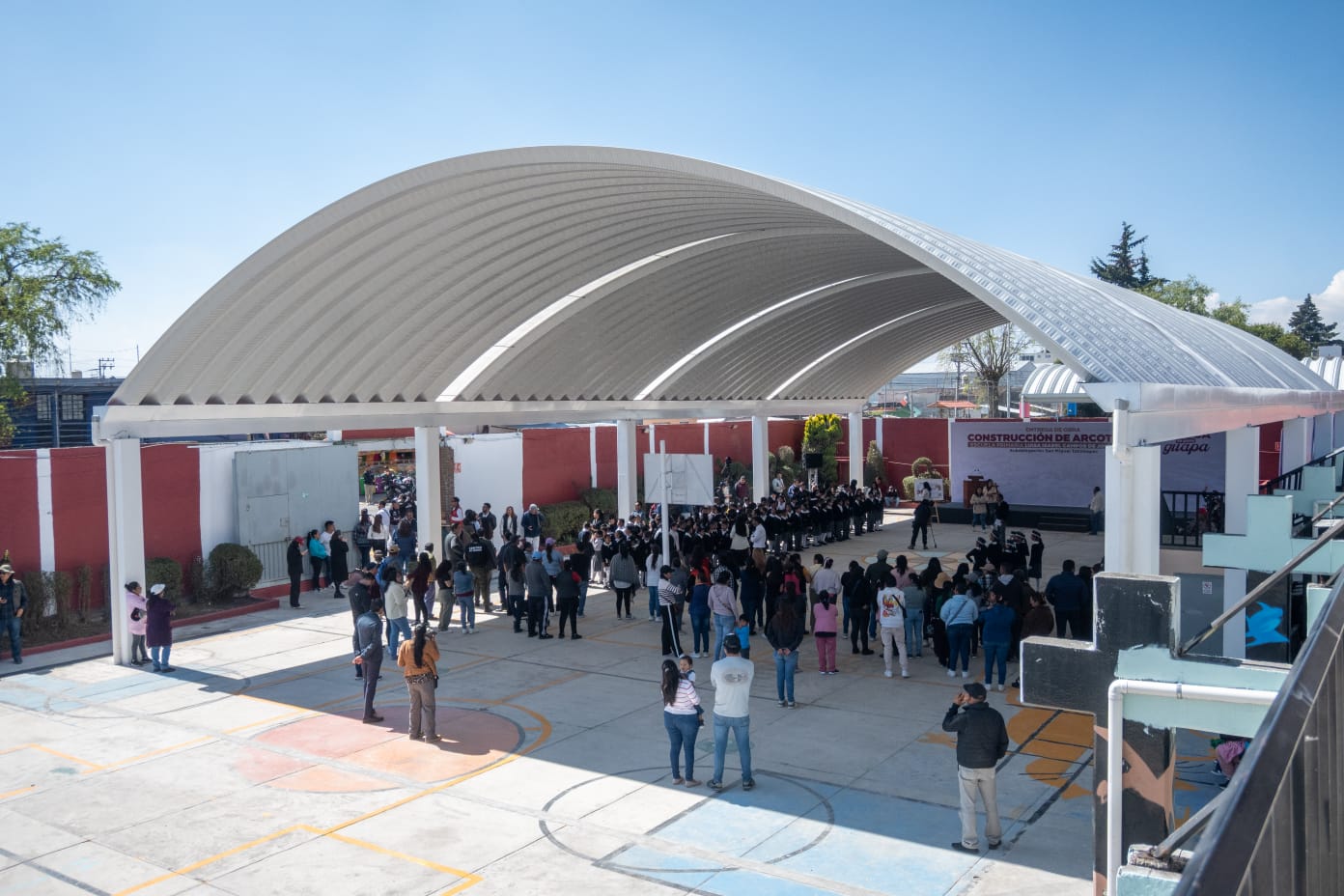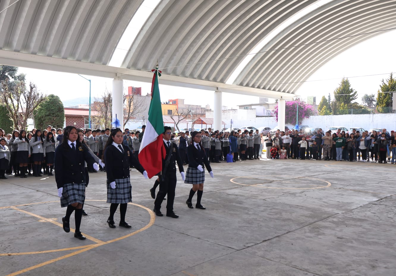 Toluca, Estado de México, 24 de febrero de 2026.- El alcalde Ricardo Moreno entregó distintos arcotechos en escuelas de educación básica de Toluca en beneficio de estudiantes y personal académico,a fin de que puedan realizar sus actividades de manera segura, funcional y digna.
