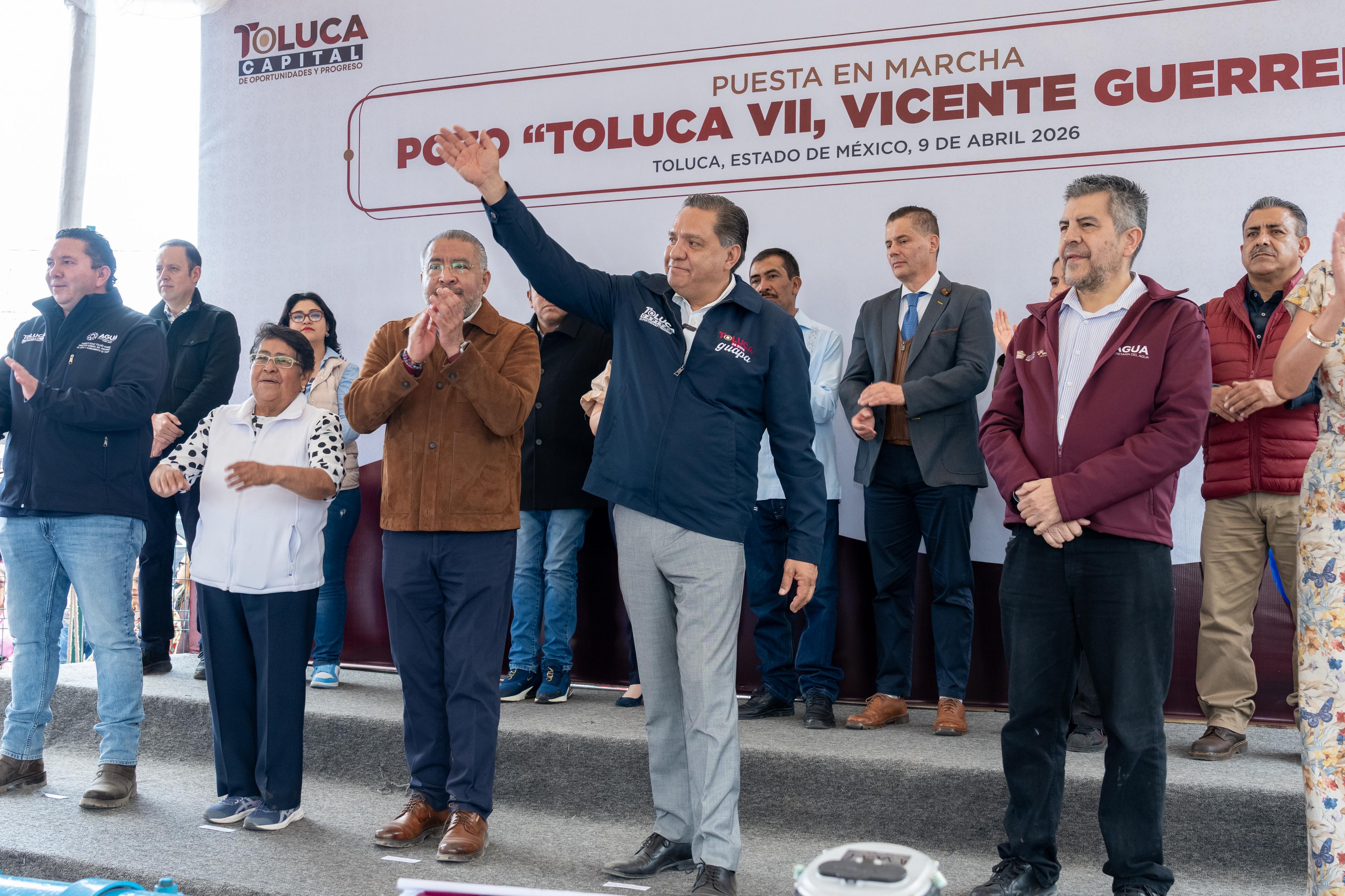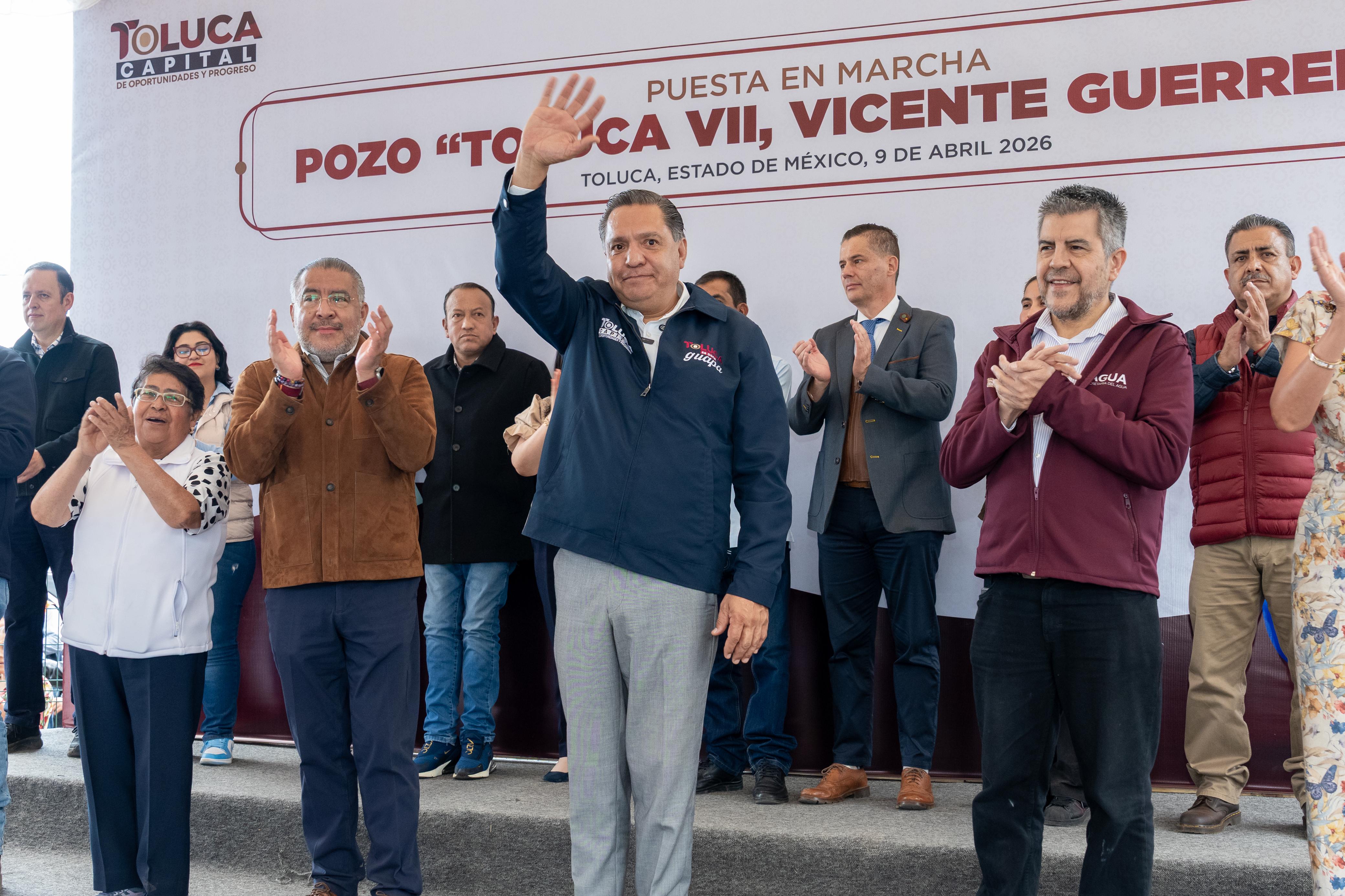 Toluca, Estado de México, 9 de abril de 2026.- El alcalde Ricardo Moreno, acompañado por el secretario general de Gobierno del Estado de México, Horacio Duarte, consolida un avance relevante hacia la autonomía hídrica mediante la entrega del pozo profundo “Toluca VII” o Vicente Guerrero.