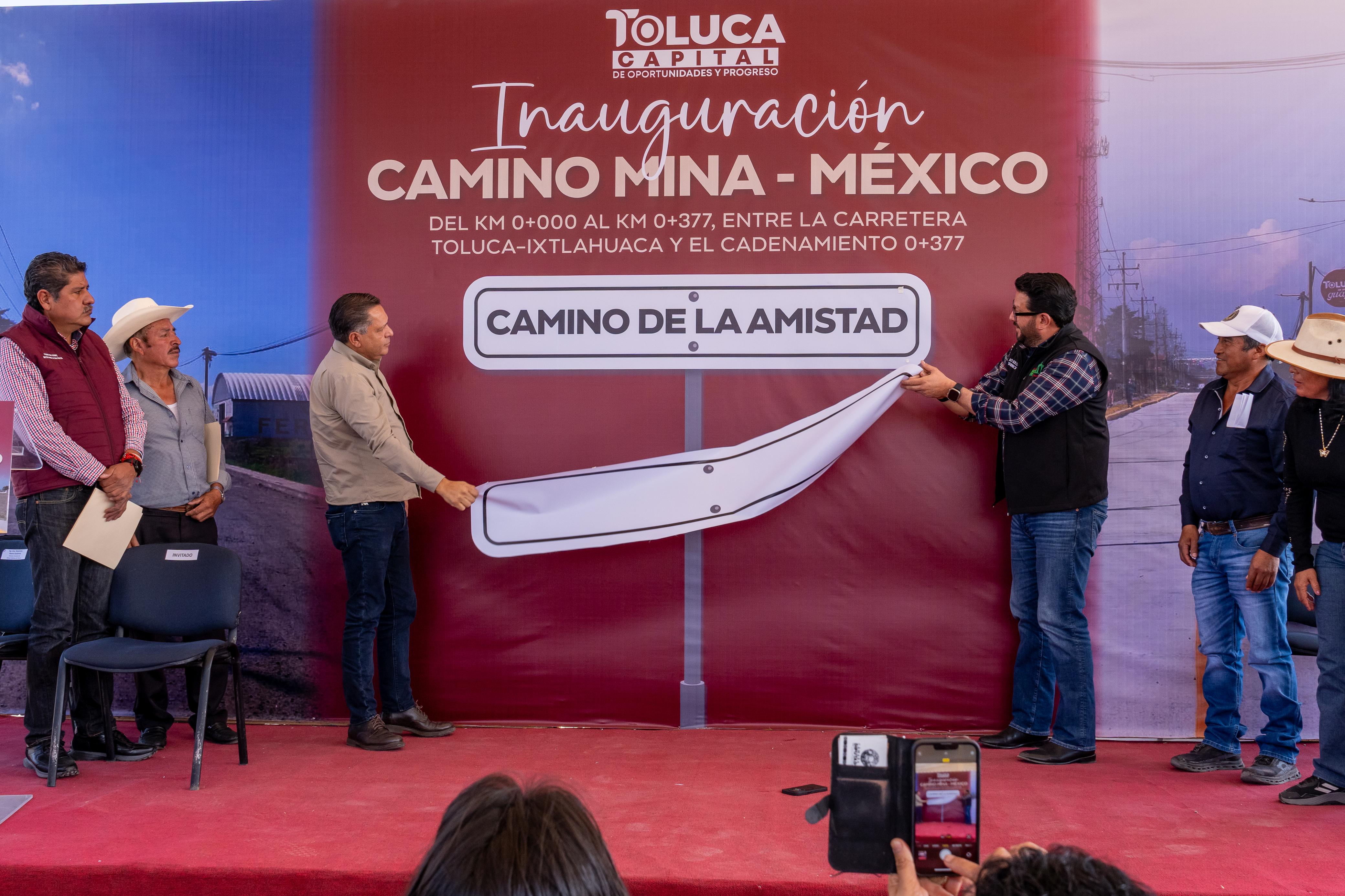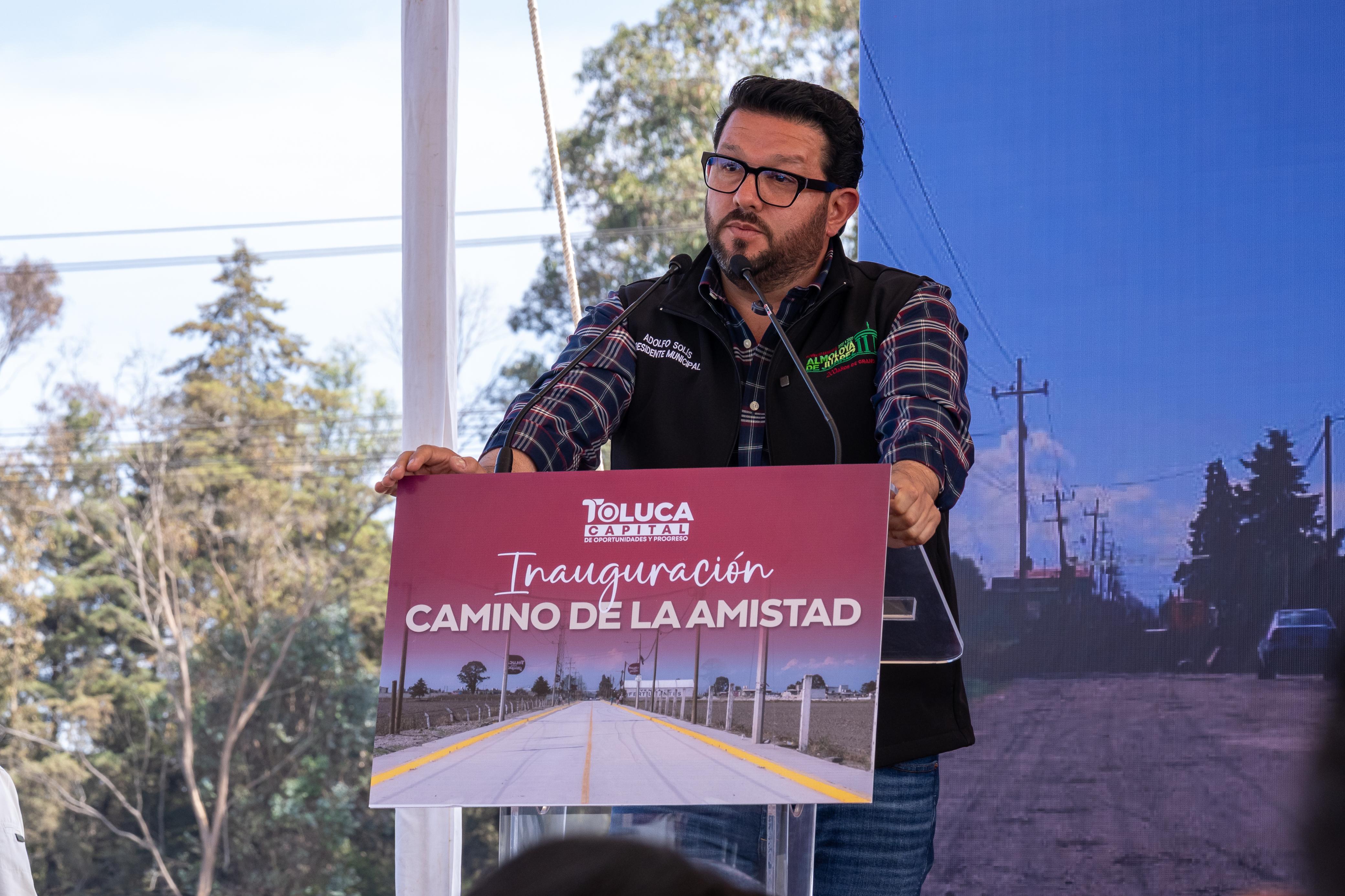 Toluca, Estado de México, 9 de enero de 2026.- La coordinación entre los gobiernos de Toluca que preside Ricardo Moreno y de Almoloya de Juárez, Adolfo Solís, se traduce en beneficios directos para la ciudadanía, pues con la inauguración de la calle “Camino de la Amistad”, se fortalece la conectividad intermunicipal y mejora la movilidad, seguridad y las oportunidades de desarrollo social y económico.