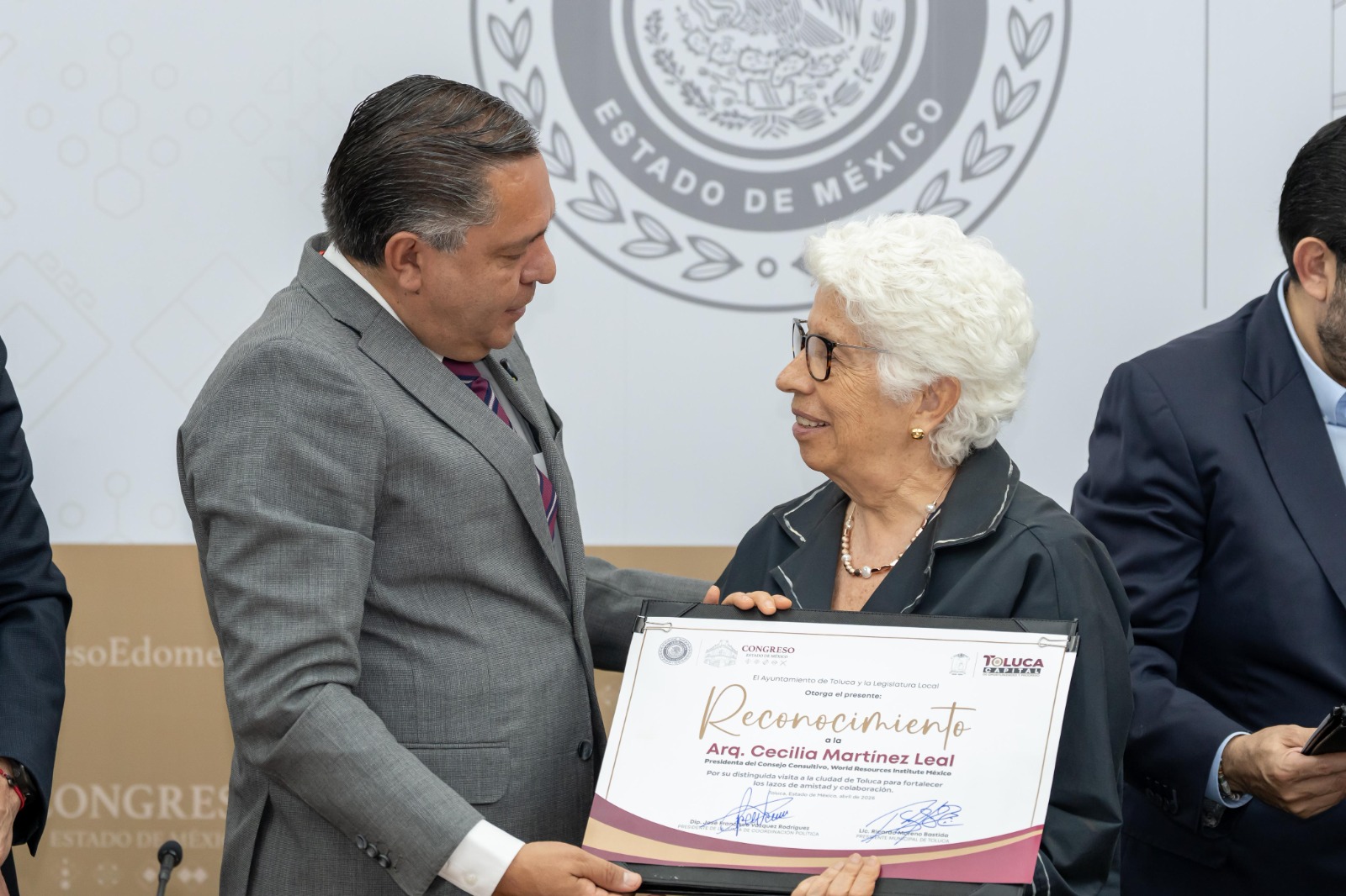 Por su parte, la presidenta de la mesa directiva de la LXII Legislatura Local, diputada Martha Azucena Camacho, reconoció al primer edil por estar presente y dispuesto a que la capital del Estado de México siga creciendo y repuntando con orgullo; además, expresó que esta iniciativa busca construir un modelo de desarrollo más equilibrado, equitativo y sostenible para dar un bienestar real a las familias y atender los desafíos complejos y multidimensionales del hábitat, mediante una visión integral, coordinación institucional y decisiones sostenidas.