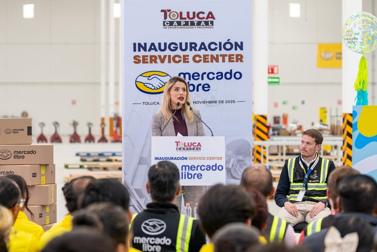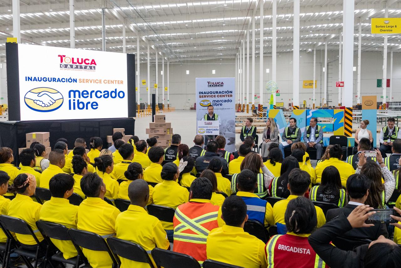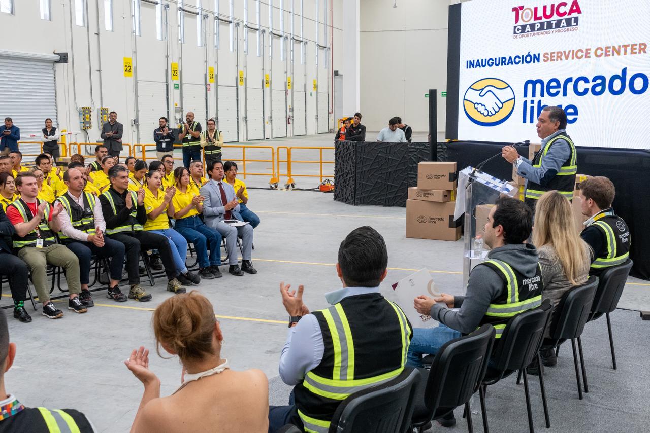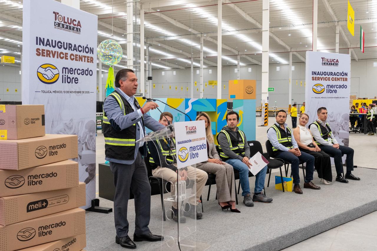 Toluca, Estado de México, 14 de noviembre de 2025.- Al inaugurar en Toluca el Service Center de Mercado Libre más grande de México, el Presidente Municipal de Toluca, Ricardo Moreno, afirmó que su gobierno continuará impulsando la inversión productiva que genere empleos formales y fortalezca las condiciones para la llegada de nuevas empresas, industrias y centros de distribución.
