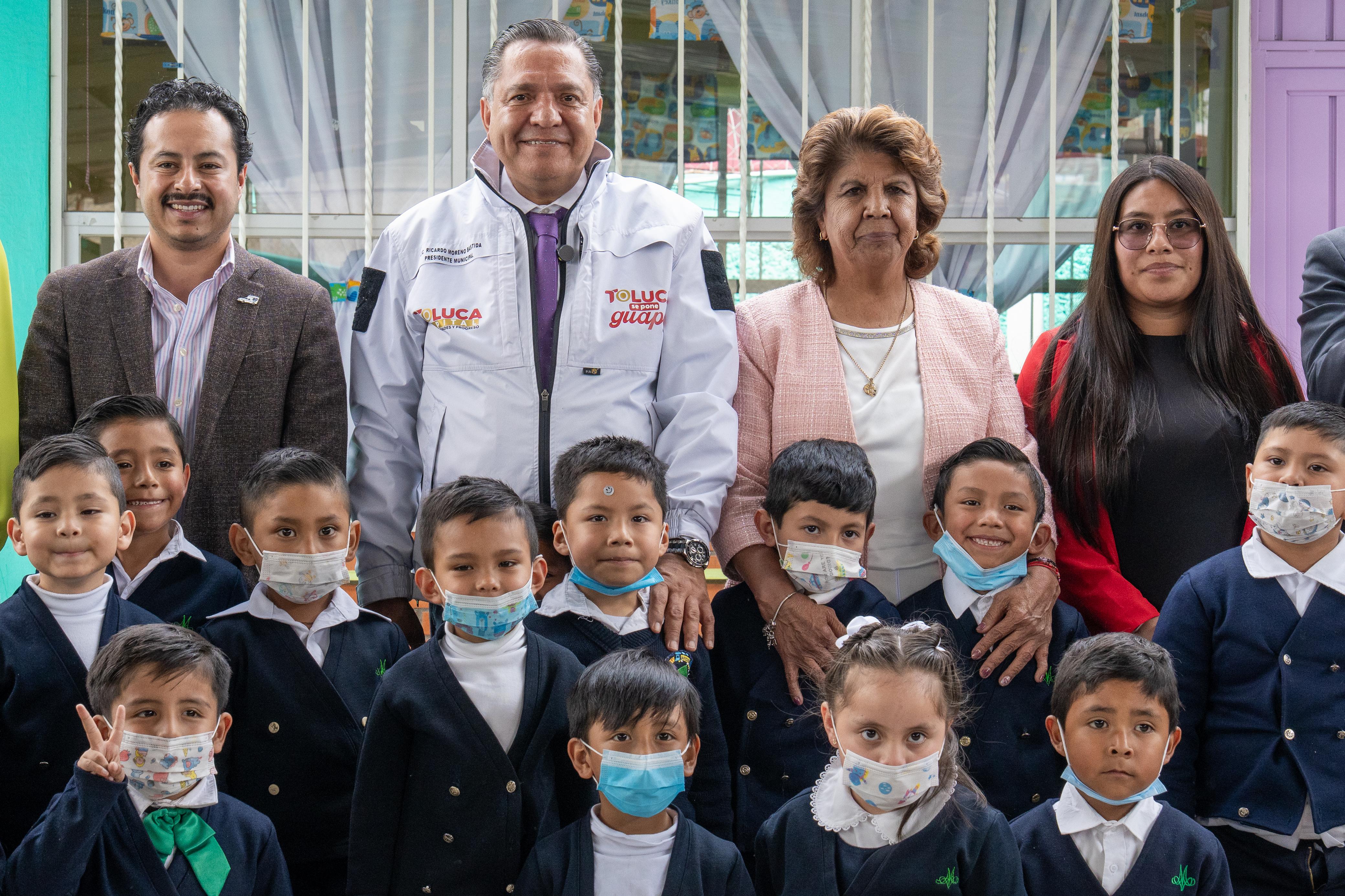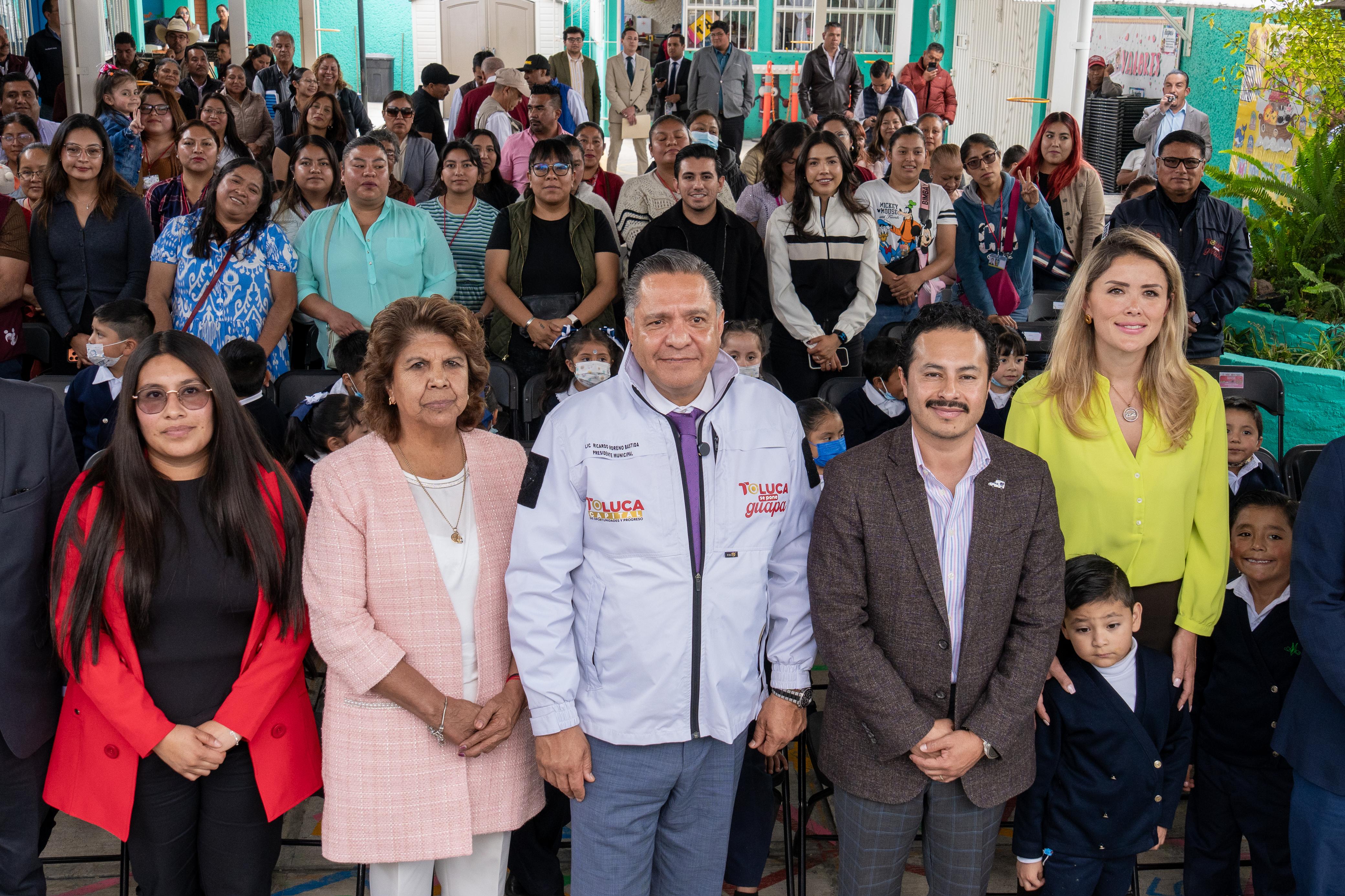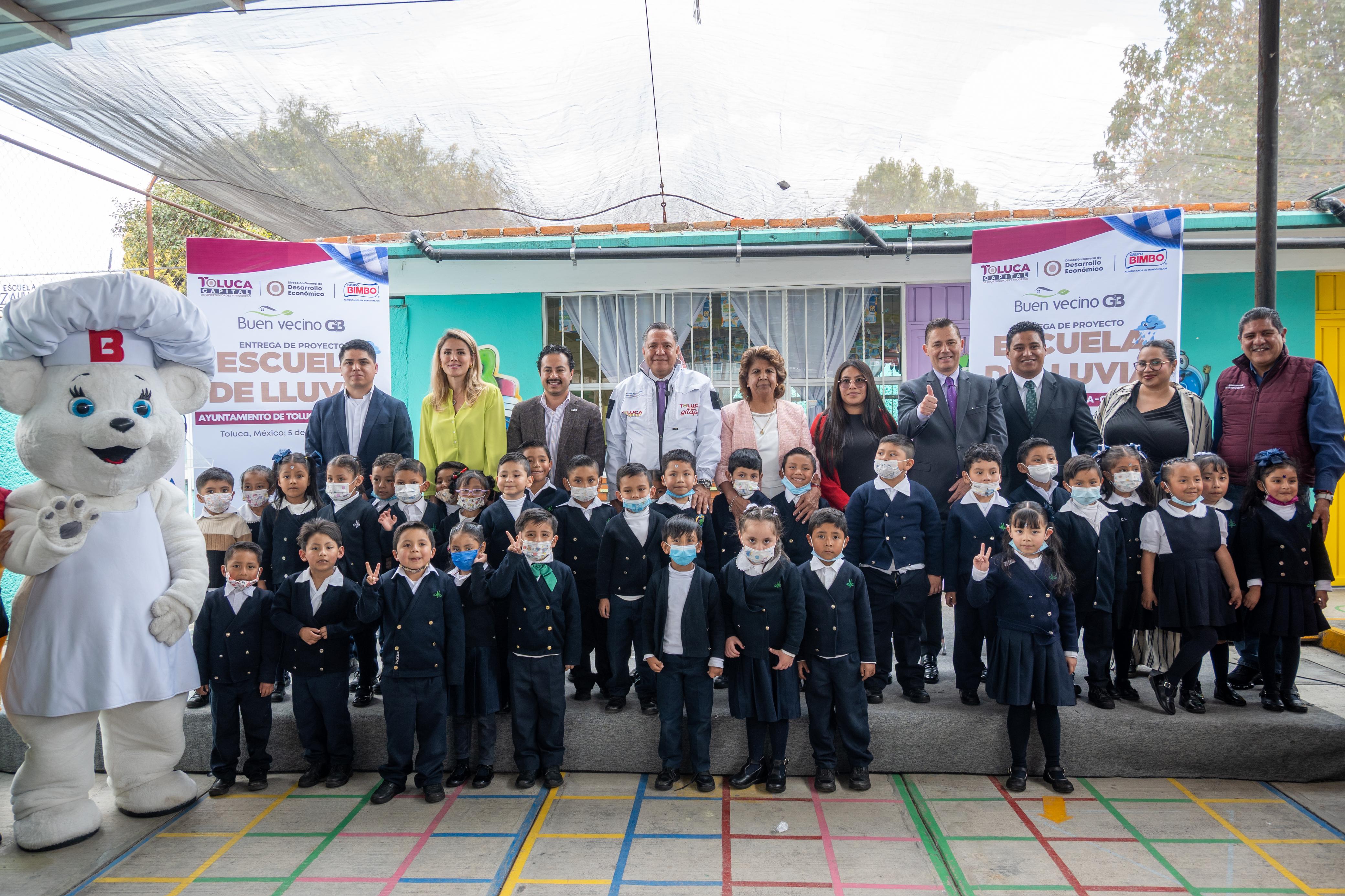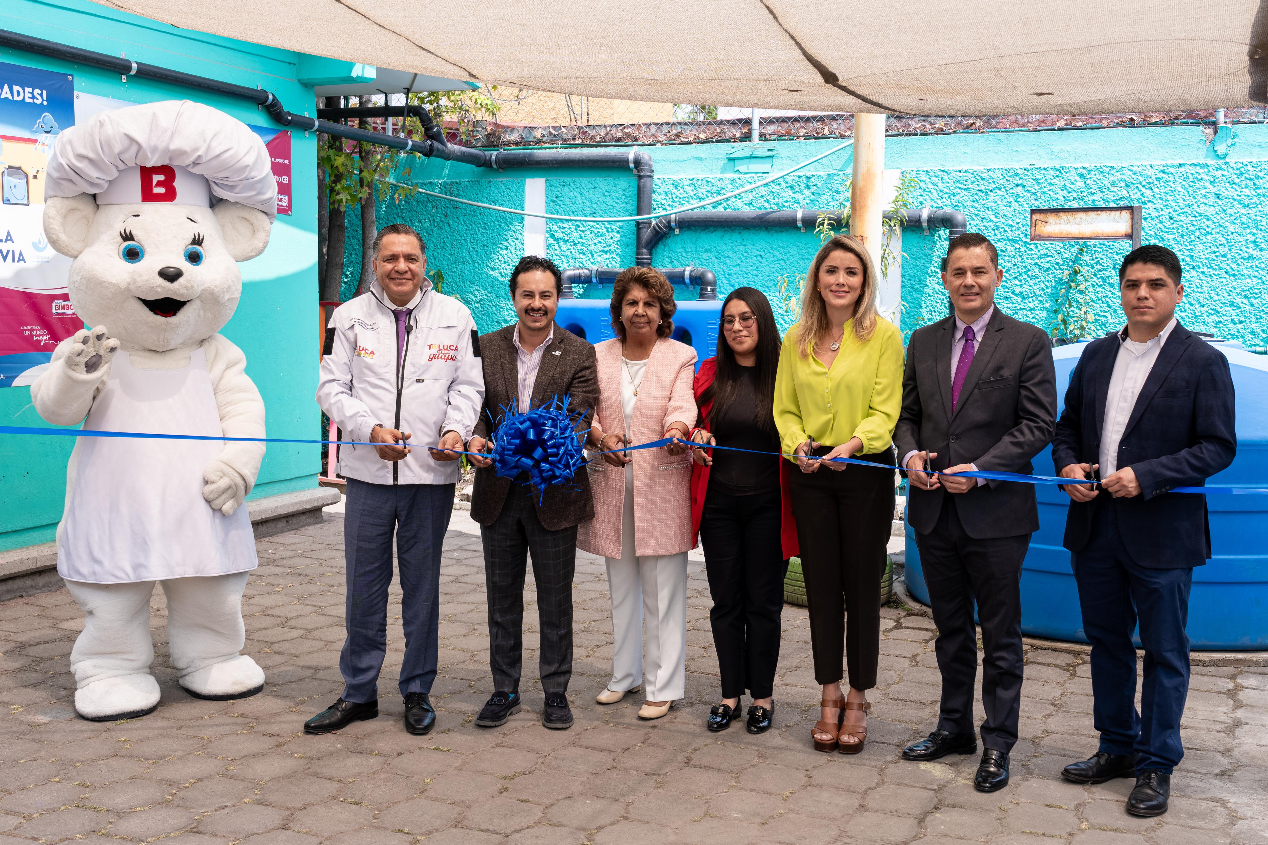 Toluca, Estado de México, 5 de marzo de 2026.- El alcalde Ricardo Moreno y Grupo Bimbo inauguraron como “Escuela de Lluvia” al Jardín de Niños María Montessori, de San Pedro Totoltepec, con lo que Toluca impulsa acciones concretas para enfrentar la escasez hídrica, fortalecer el uso responsable del agua y reducir la huella ambiental.