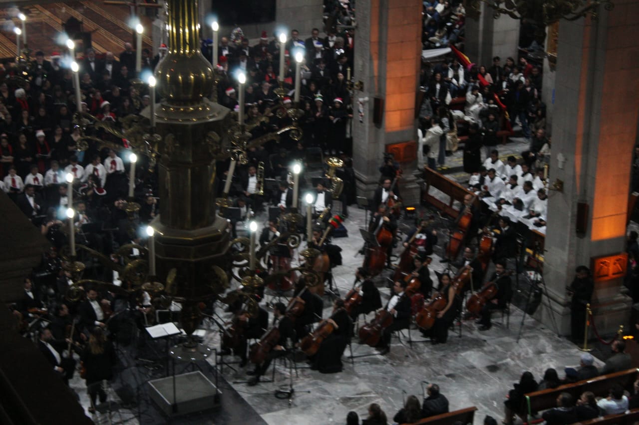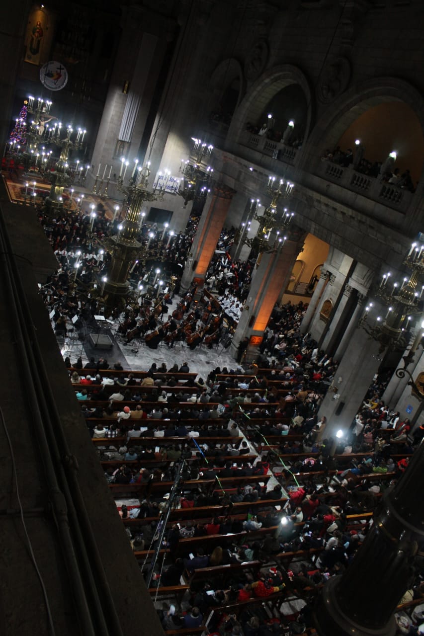 Desde el primer acorde de Veni veni Emmanuel, el ambiente se colmó de la magia de la Navidad, y prosiguió con Alma Redemptoris Mater, el concierto para dos violines BWV 1043 J.S.Bach, con I. Vivace, II. Largo ma non tanto, III. Alegro; además de clásicos como O holy Night, A.Adam; Pastores de la montaña, anónimo; Noche de paz, F. Gruber; El burrito sabanero, H. Blanco; Campana sobre campana, M. Navarro; Adeste fideles, anónimo, y Las piñatas, M. Urbán, entre otros.