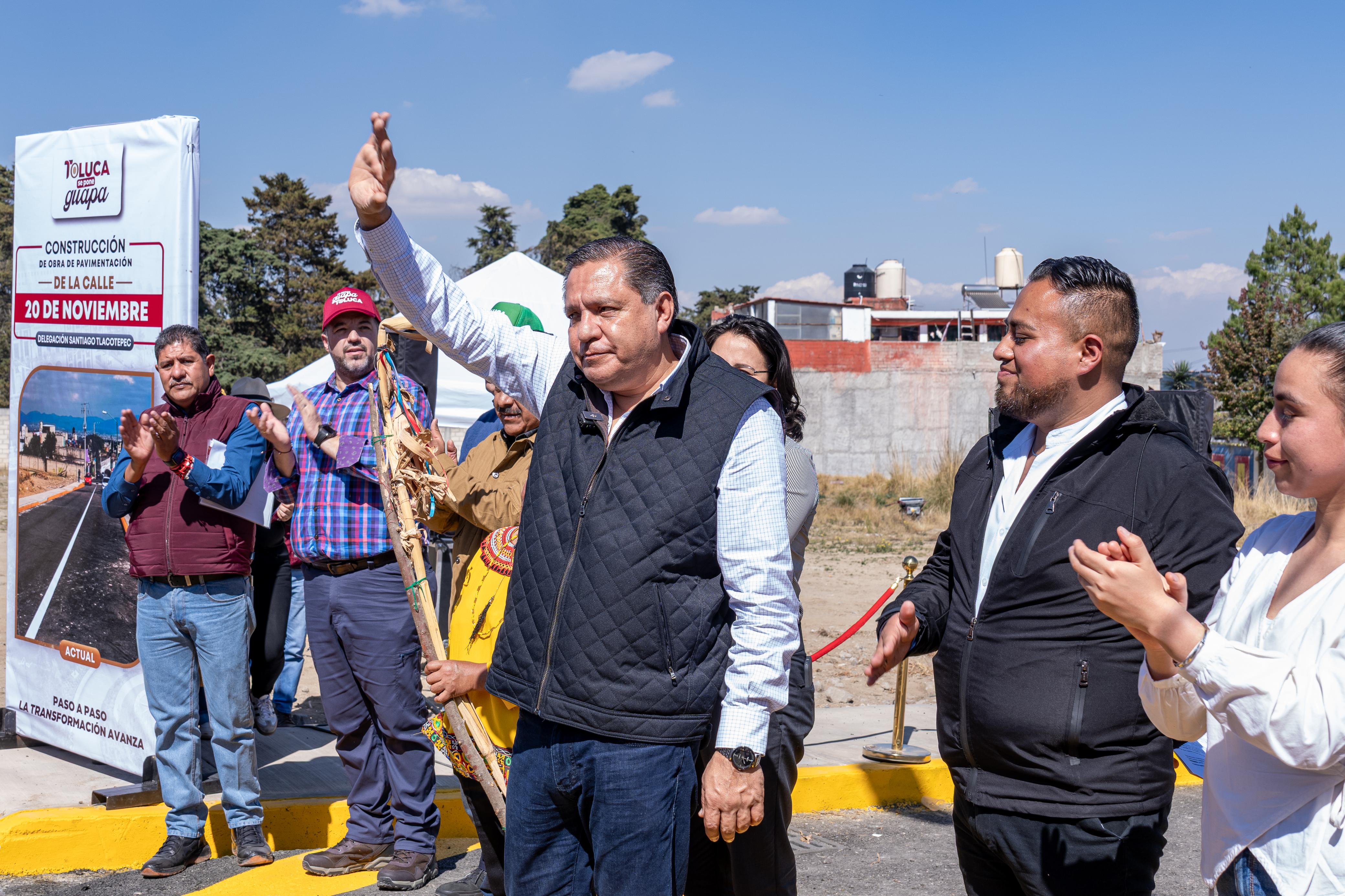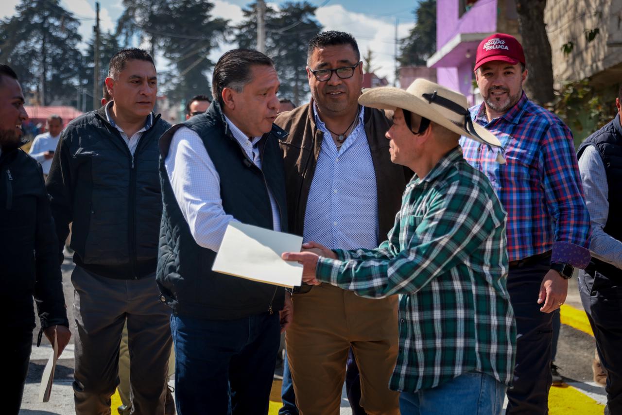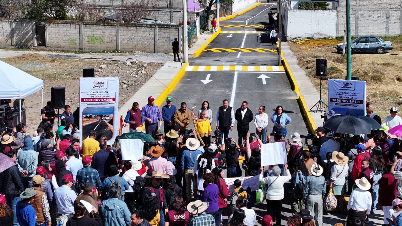 Toluca, Estado de México, 27 de enero de 2026.- El Presidente Municipal de Toluca, Ricardo Moreno, inauguró la pavimentación con carpeta asfáltica de la calle 20 de Noviembre, entre camino a San Juan Tilapa y Libertad, en Santiago Tlacotepec, realizada en beneficio de cerca de 14 mil habitantes y 3 mil 462 viviendas.