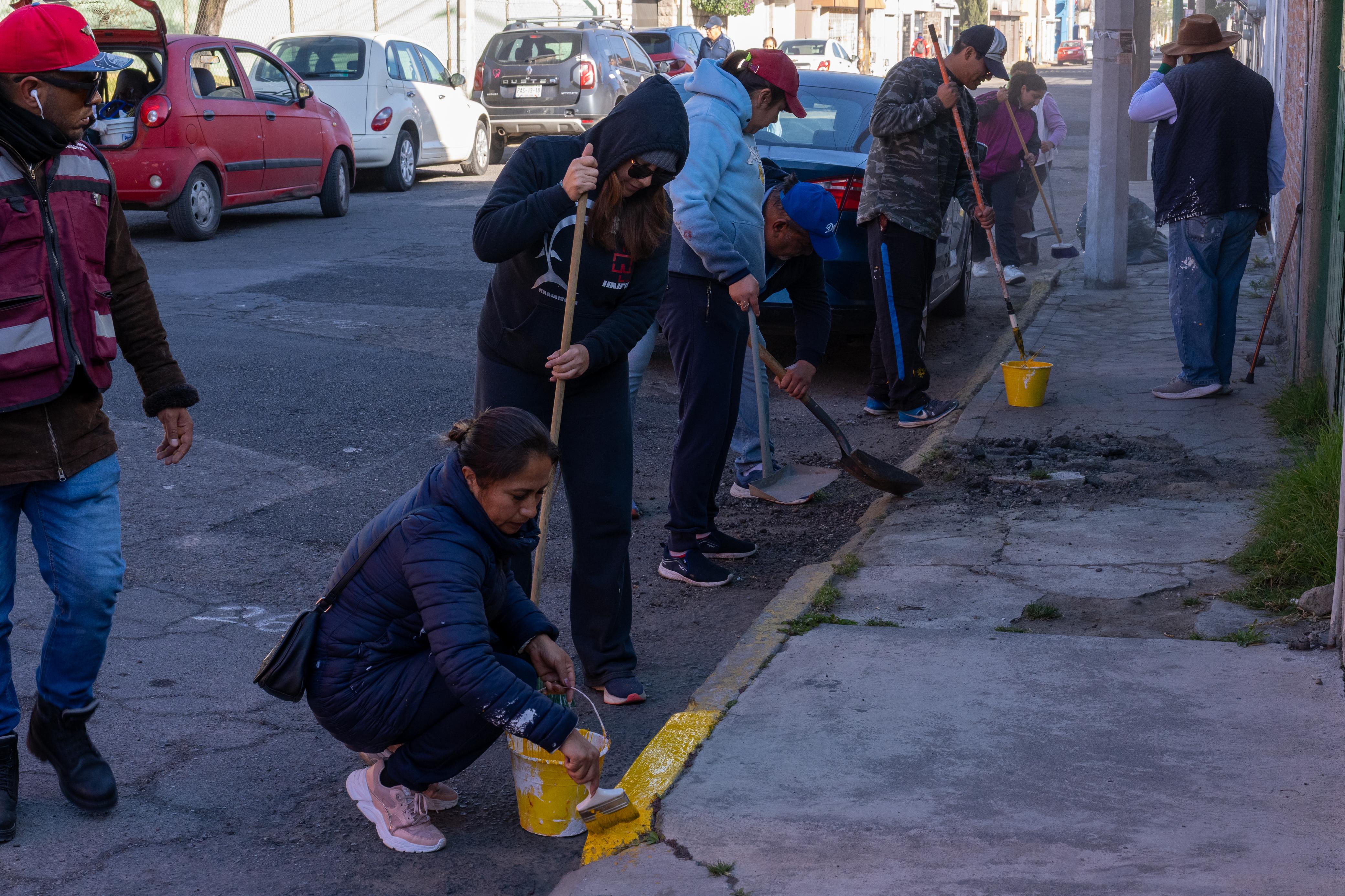 Al mismo tiempo que el programa mantiene de manera paralela el rescate de espacios públicos y zonas estratégicas con pinta de guarniciones y banquetas; poda de áreas verdes, barrido y recolección de basura, en comunidades como las calles Miguel Hidalgo, Benito Juárez y Arturo Martínez Legorreta de San Pablo Autopan; la vialidad Eduardo Hernández Cházaro, de Ocho Cedros, e Independencia de Santa Ana Tlapaltitlán, entre otras.