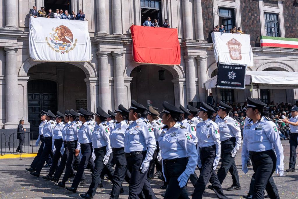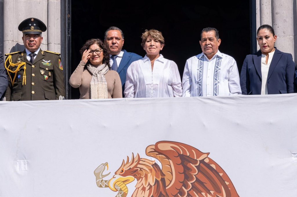 Desde el balcón de Palacio de Gobierno, el Presidente Municipal, Ricardo Moreno, acompañó a la Gobernadora Delfina Gómez, al presidente de la Junta de Coordinación Política de la LXII Legislatura del Estado de México, diputado Francisco Vázquez Rodríguez, y a la presidenta de la Mesa Directiva del Congreso, Martha Azucena Camacho, para saludar al contingente encabezado por un carro alegórico alusivo a la gesta revolucionaria.