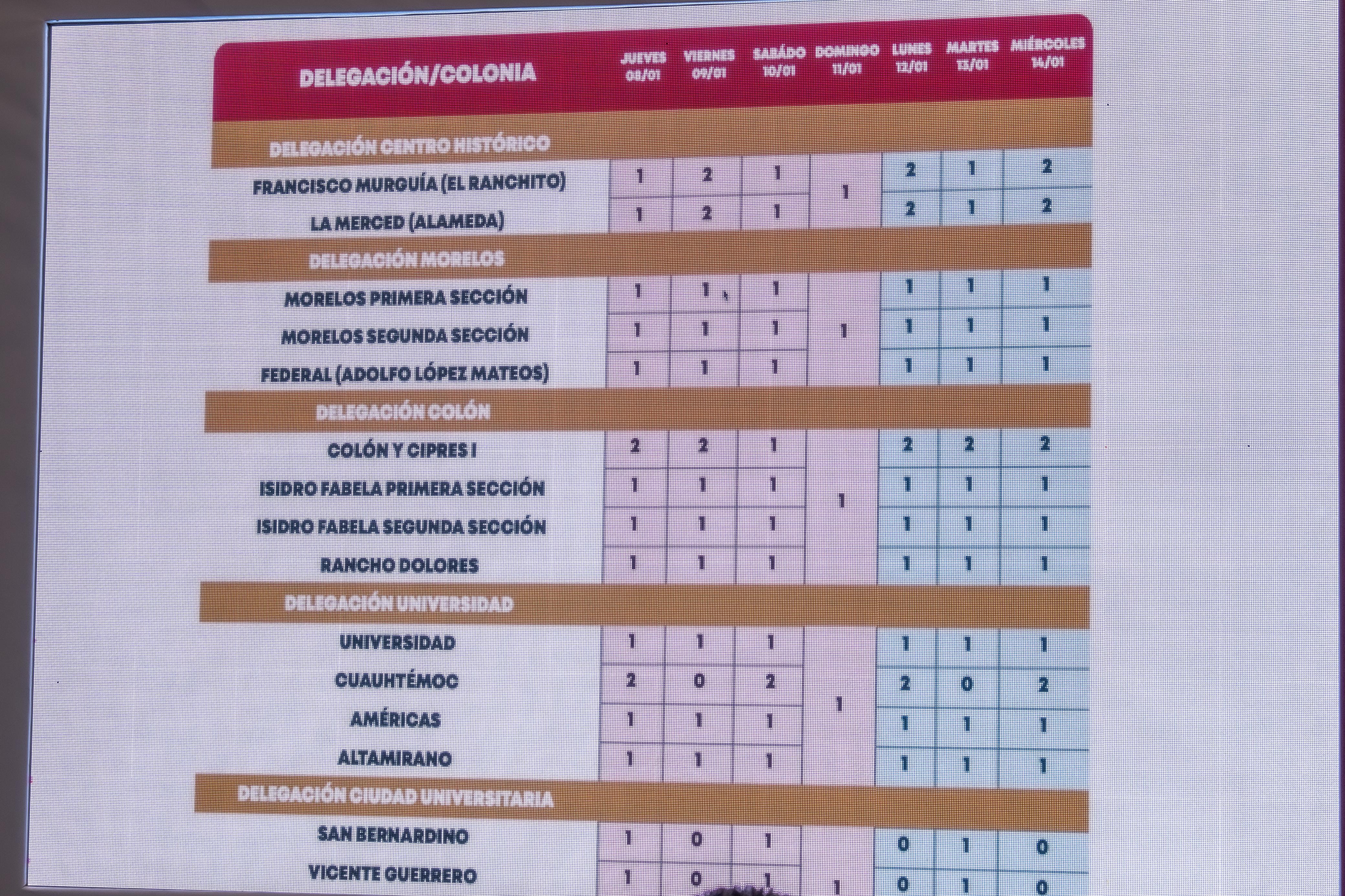 Al respecto, el Director General del Organismo Agua y Saneamiento (OAyST), Alberto Valdés, detalló la implementación del programa extraordinario de abasto mediante pipas gratuitas, reforzando así el suministro en las delegaciones Centro Histórico, Morelos, Colón, Universidad y Ciudad Universitaria, pues durante este operativo participan 17 camiones cisterna que realizan cuatro viajes diarios, además señaló que los pozos continúan operando aunque con menor presión en la red.
