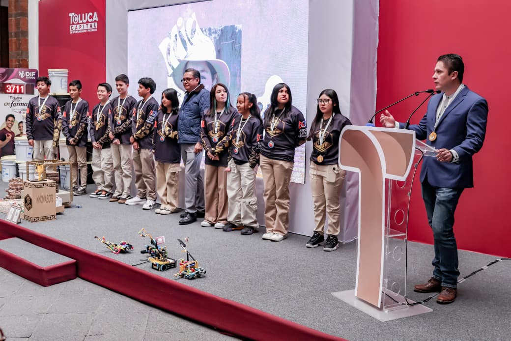 Toluca, Estado de México, 28 de marzo de 2026.- El Presidente Municipal, Ricardo Moreno, reconoció el talento, la disciplina e innovación de los estudiantes del Club de Robótica Innovabots de la Escuela Secundaria Guadalupe Victoria, quienes obtuvieron el primer lugar estatal en el campeonato del Juego del Robot, consolidándose como un referente en el ámbito tecnológico.