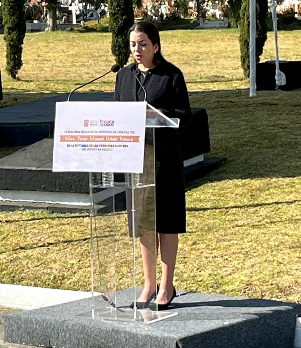 Ante la presencia del Coordinador Regional de Gobierno, David Orihuela, así como hijos, hermanos y familia de Víctor Urbán Velasco, artistas y personajes importantes en materia cultural, se realizó la ceremonia solemne del depósito de las cenizas en la Rotonda ubicada dentro del Panteón Municipal de Toluca.