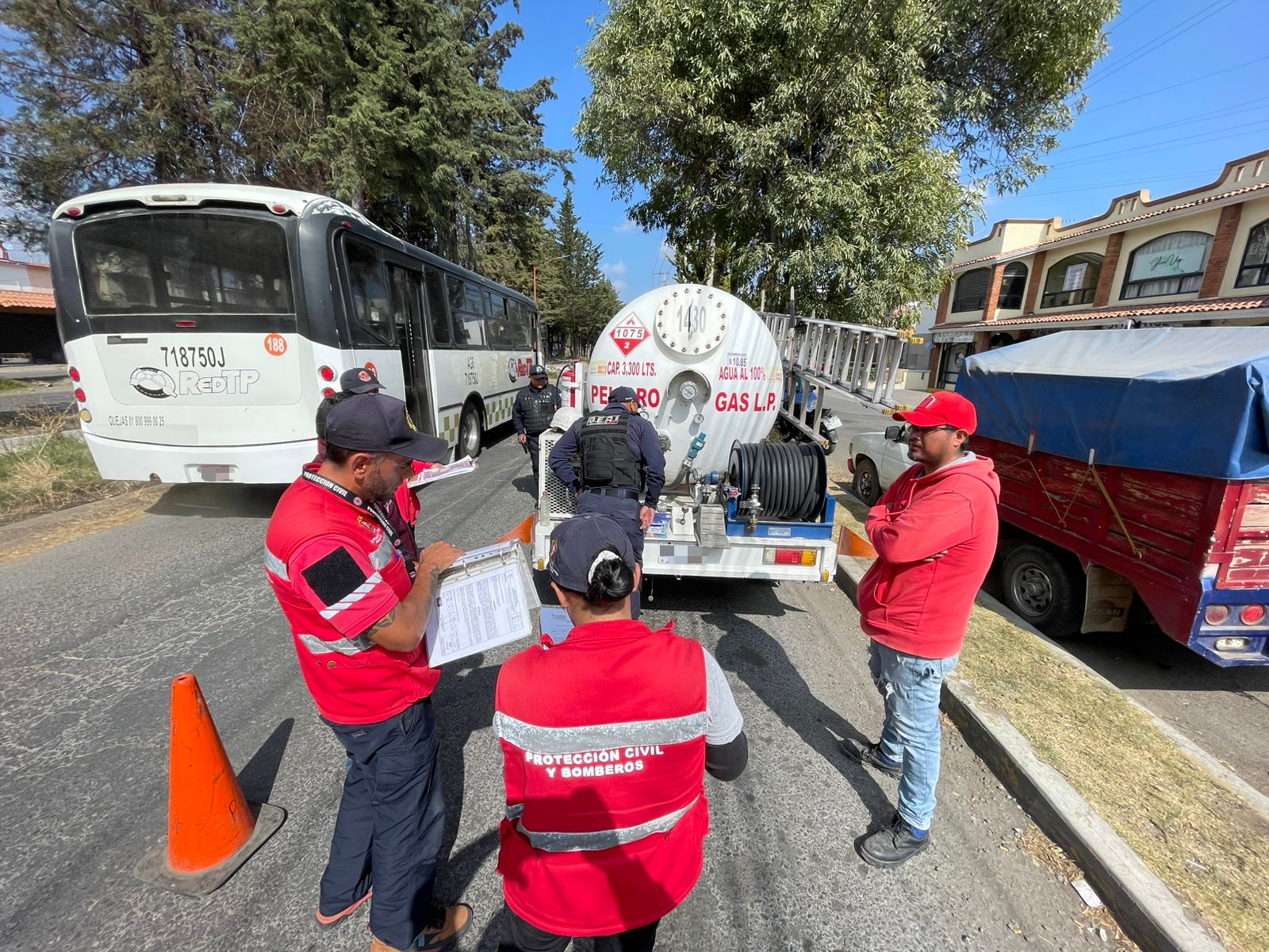 Durante las inspecciones realizadas por el personal, según la instrucción emitida por el alcalde Ricardo Moreno, se revisan medidas de seguridad como banderines, conos, botiquín, equipo de protección personal y válvulas en buen estado, además de corroborar la documentación requerida, entre ellas, el permiso de transportación de gas LP emitido por la Comisión Reguladora de Energía; también se verifica el número de serie, año de fabricación y dictámenes de vida útil de los autotanques.
