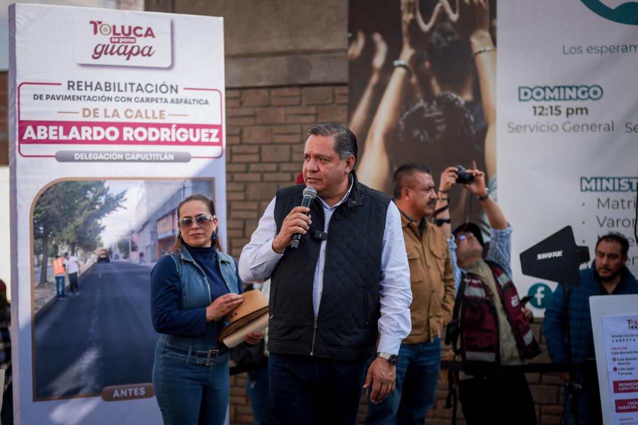 Durante el evento, Moreno Bastida adelantó la rehabilitación total de la avenida Jesús Carranza, una de las principales salidas de las delegaciones del sur del municipio y conexión directa con el centro de la capital mexiquense; asimismo, anunció que se intervendrá en su totalidad la avenida Abelardo Rodríguez, desde la Preparatoria No. 5, hasta Paseo Colón.