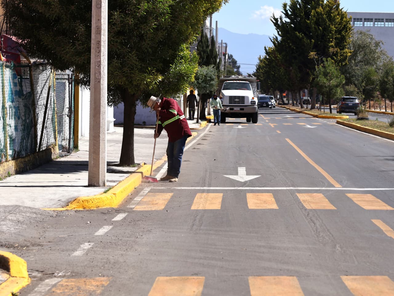 Los trabajos incluyeron el barrido mecánico de la superficie de rodamiento, la aplicación del recubrimiento slurry en una superficie total de 16 mil 250 metros cuadrados, así como el balizamiento de la vía, acciones que mejoran significativamente la movilidad, la seguridad vial y las condiciones de tránsito tanto para peatones como para automovilistas.