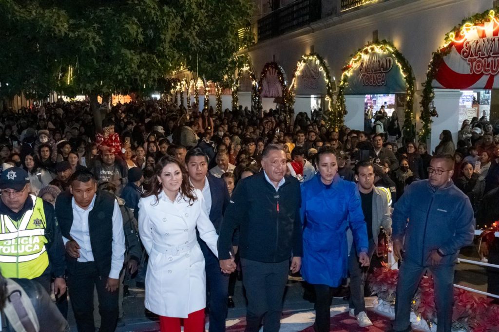 Acompañado por la Presidenta del DIF Toluca, Rocío Pegueros Velázquez, las diputadas Ana Yurixi Leyva y Paola Jiménez, el diputado Gerardo Pliego; el coordinador y la directora general del Gobierno estatal David Orihuela y Adriana Rodriguez; monseñor Guillermo Fernandez Orozco; el alcalde deseó una feliz Navidad y un próspero 2026 e invitó a la población a visitar los espacios instagrameables del Centro Histórico para guardar recuerdos en familia.