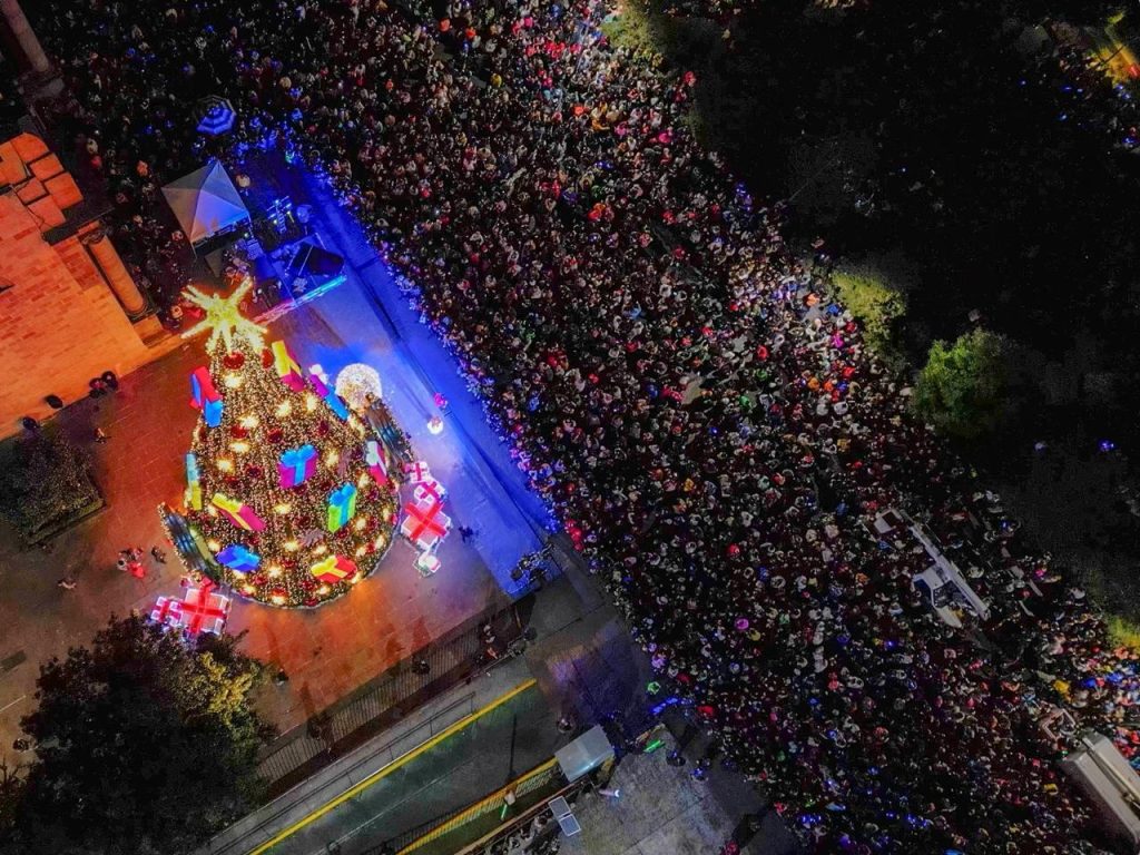 Toluca, Estado de México, 1 de diciembre de 2025.- El espíritu decembrino iluminó el corazón de la capital con el encendido del Árbol Navideño, donde más de tres mil 200 personas se reunieron para disfrutar de un ambiente de convivencia familiar, alegría y tradición.