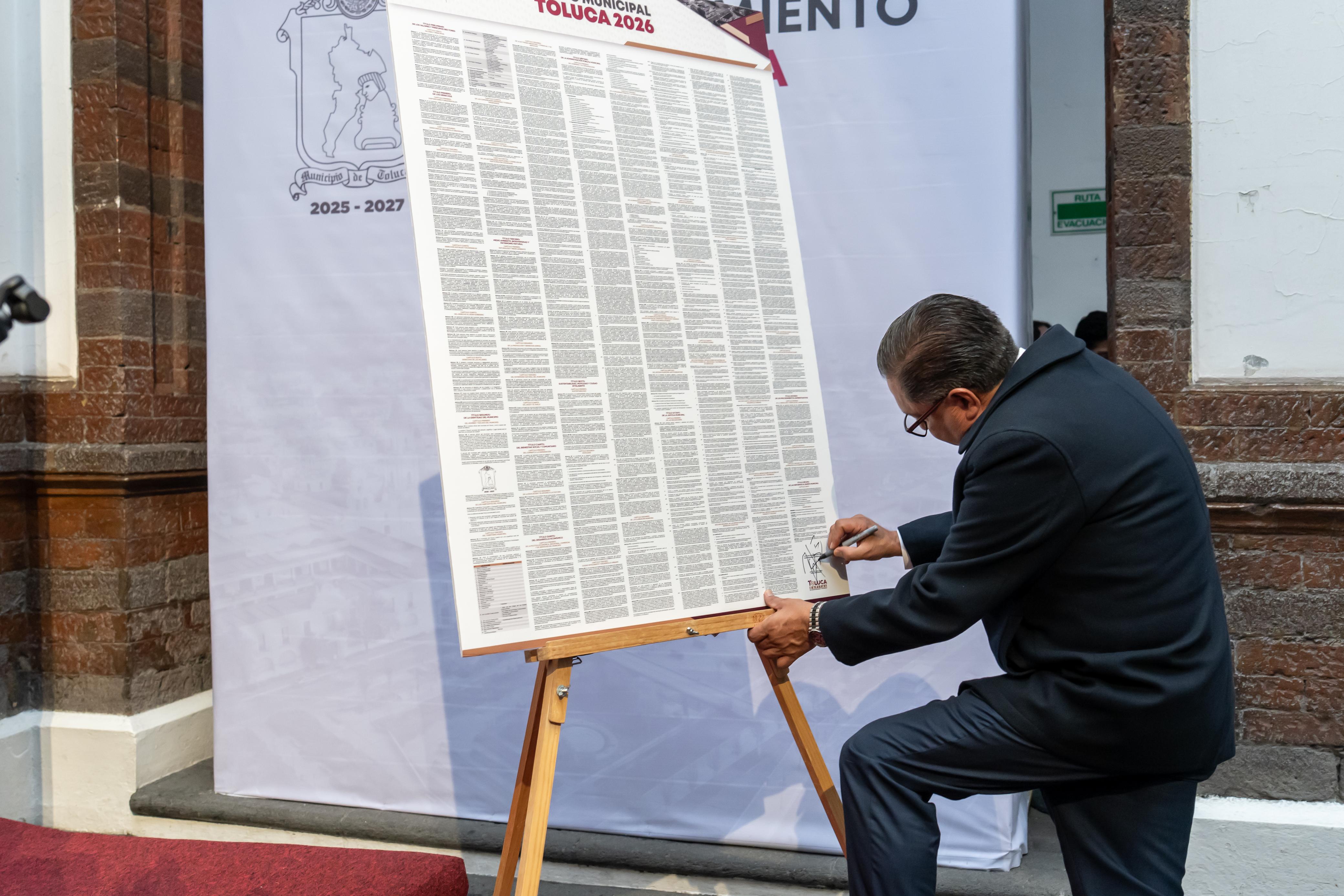 Ante David Orihuela Nava, coordinador general de Gobierno del Valle de Toluca y representante de la gobernadora Delfina Gómez, el alcalde señaló que esta reglamentación es resultado de un esfuerzo colegiado dentro de un Cabildo plural e incluyente, donde la participación social es el eje rector.