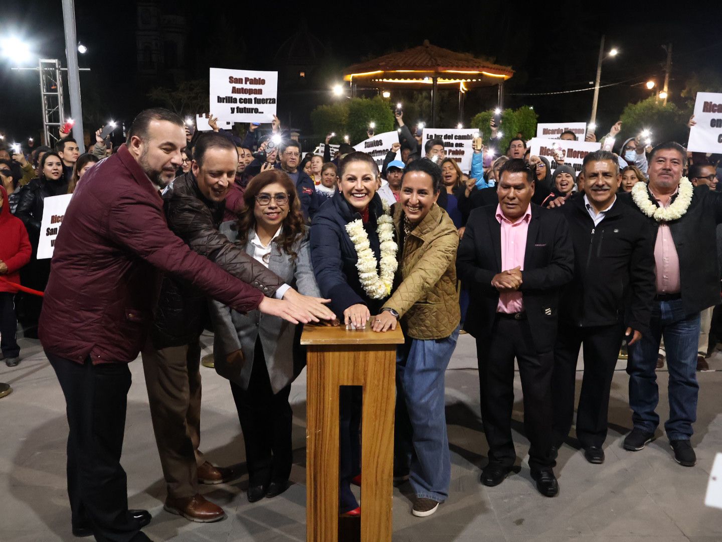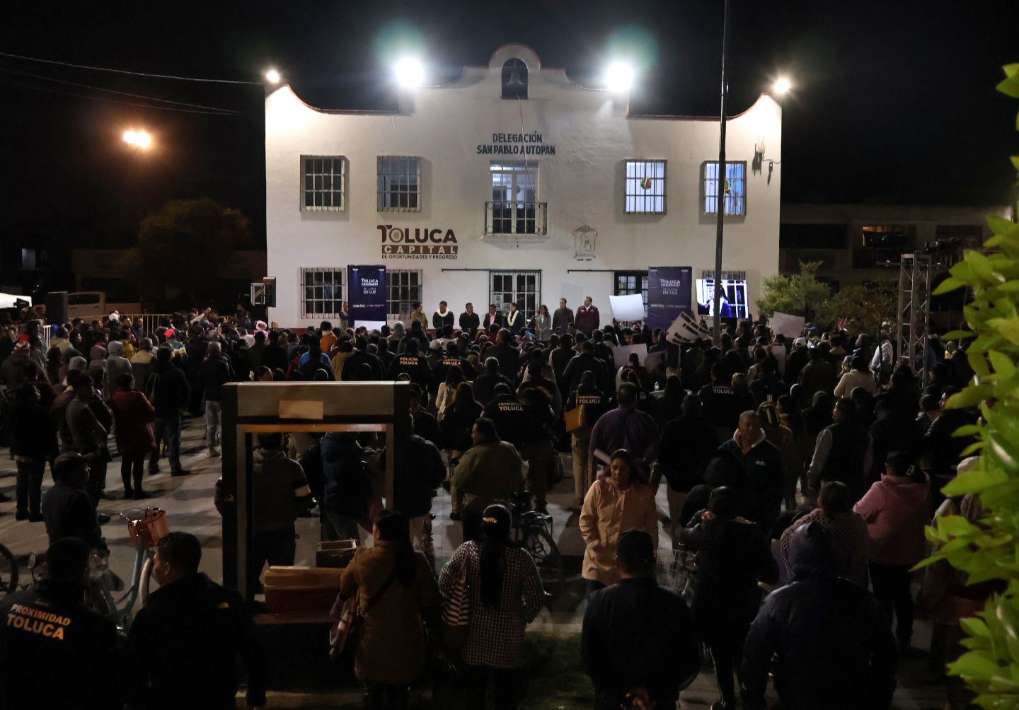 Toluca, Estado de México, 14 de noviembre de 2025.- En San Pablo Autopan fueron encendidas más de 2 mil luminarias como parte del programa Toluca se llena de luz, un avance que reafirma que cuando gobierno y sociedad caminan juntos, las metas se convierten en realidades.