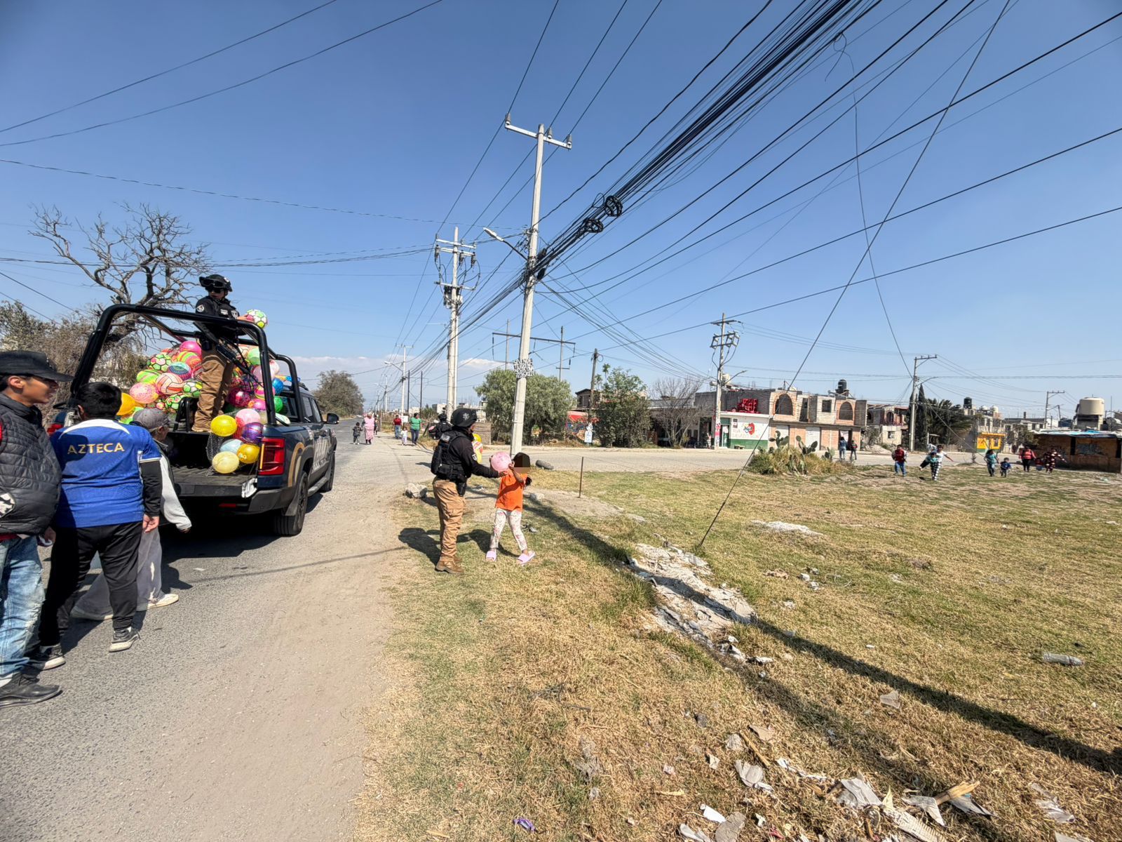 Toluca, Estado de México, 7 de enero de 2026.- Elementos de la Dirección General de Seguridad y Protección de Toluca así como bomberos y paramédicos de la capital mexiquense se unieron a la labor de los Reyes Magos y entregaron juguetes a niñas y niños de distintas colonias del municipio.