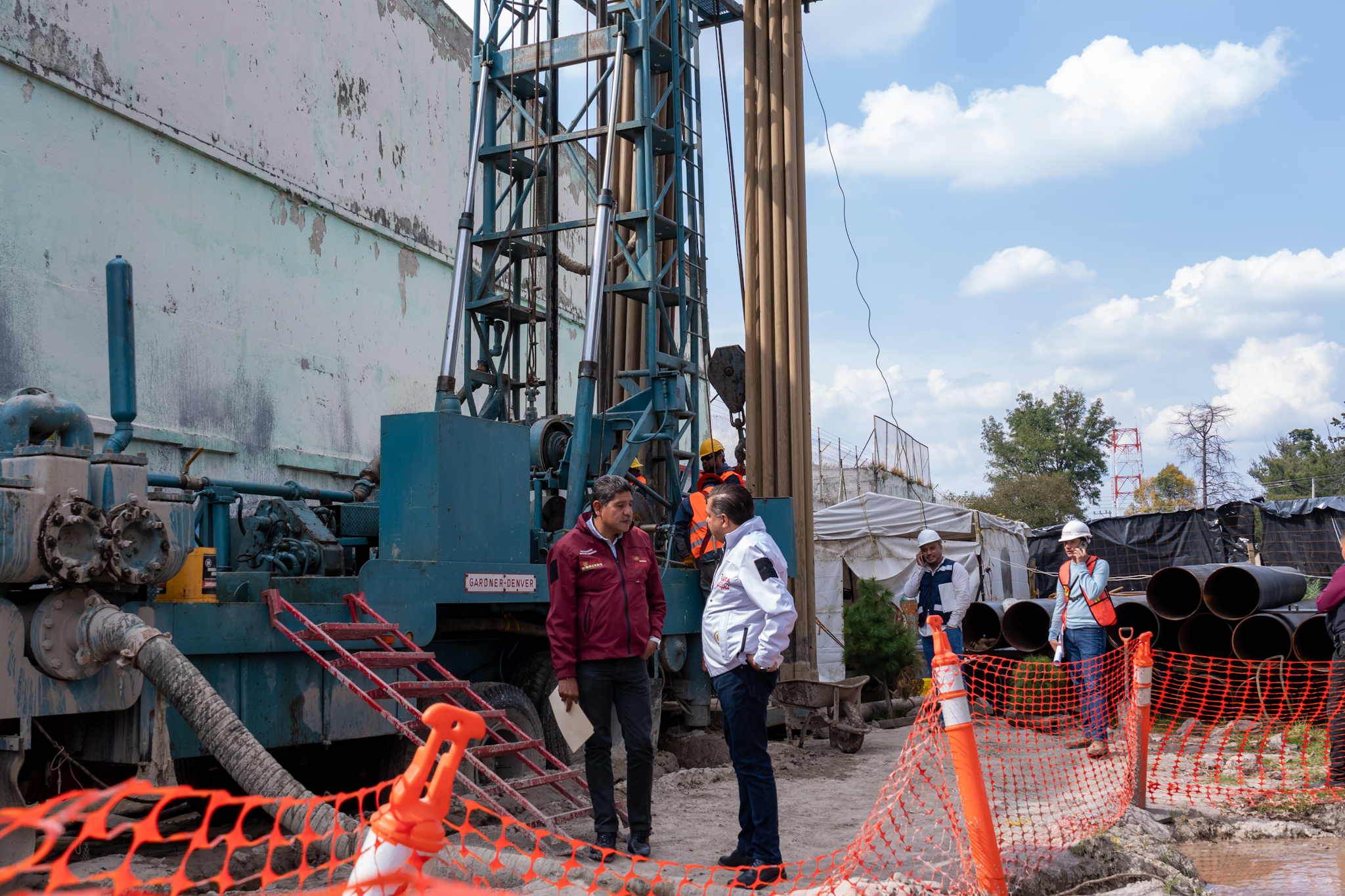 Señaló que la obra contempla la perforación de 300 metros de profundidad e incluye la instalación de tubería para ademe que lo protege contra derrumbes y contaminación, diseñado para estructuras de pozos profundos, equipo de bombeo, tren de descarga, equipamiento eléctrico y electromecánico, además de la construcción de caseta y barda perimetral.