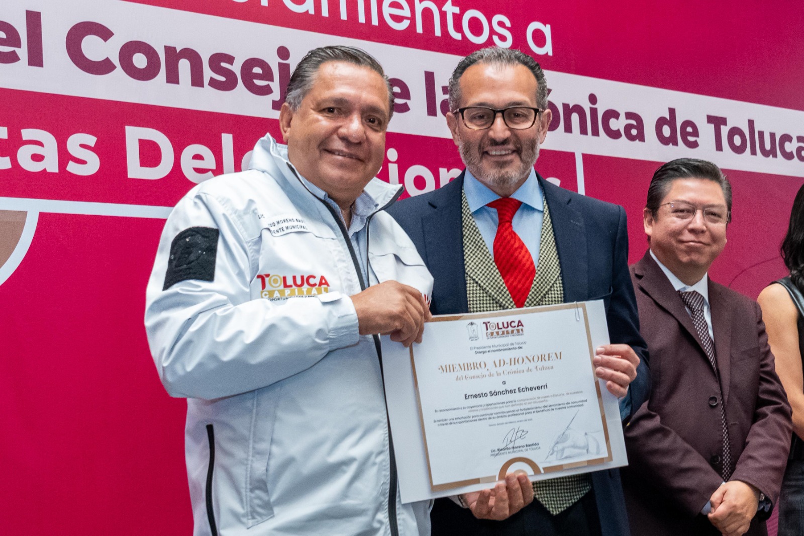 Por su parte, el cronista municipal Alexander Naime, destacó que el Consejo de la Crónica está integrado por 25 toluqueños distinguidos cuya trayectoria está ligada a la historia de Toluca, al tiempo que tienen un vínculo con la sociedad que permitirá impulsar diversos proyectos en pro de las presentes y futuras generaciones; asimismo, reconoció el apoyo del primer edil para registrar los hechos que hacen la historia de la capital mexiquense.