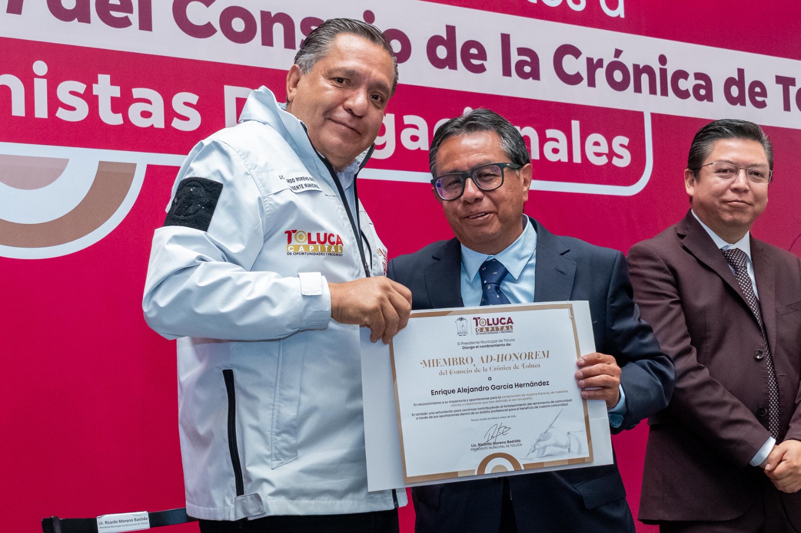 Así lo dio a conocer el Presidente Municipal de Toluca, Ricardo Moreno, después de tomar protesta y entregar nombramientos a integrantes del Consejo de la Crónica de la capital mexiquense, miembros ad honorem, cronistas y vicecronistas, quienes cuentan y plasman la historia íntima del municipio.