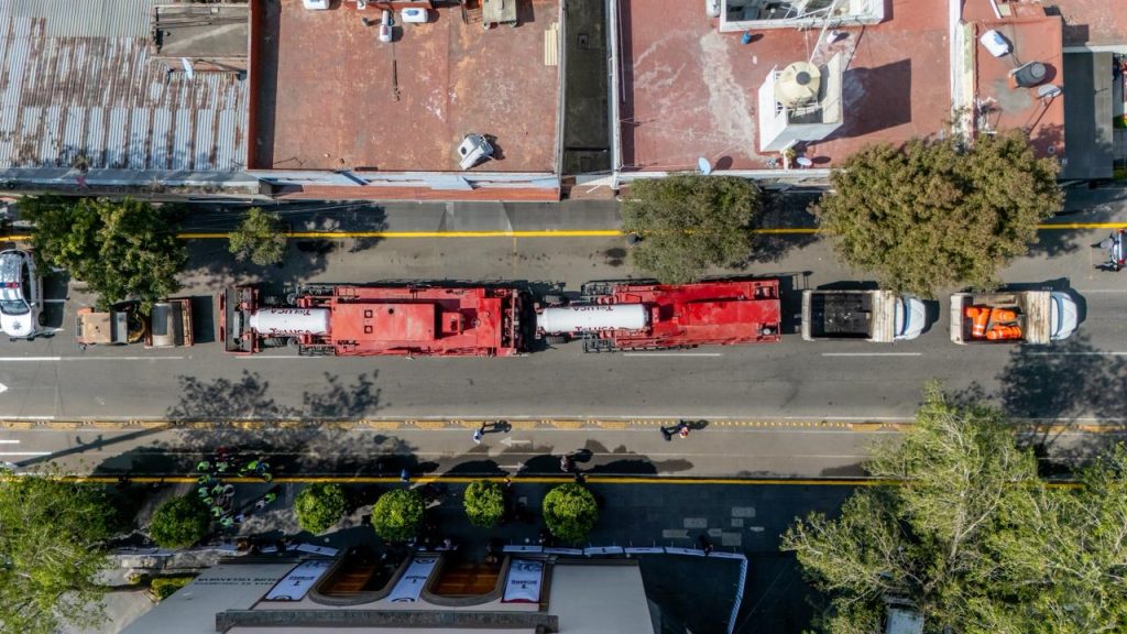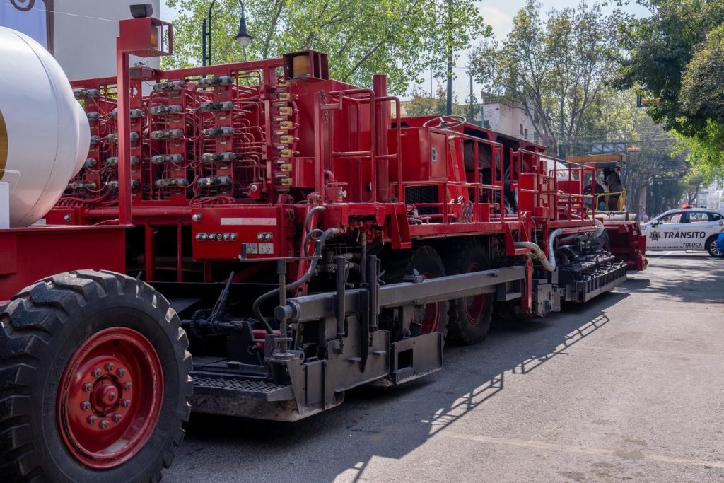 Toluca, Estado de México, 3 de diciembre de 2025.- Con el pulso firme en respuesta a una población que aspira a un entorno moderno y seguro, este martes iniciaron su travesía tres trenes de repavimentación, un equipo de alta tecnología concebido para enfrentar uno de los problemas más persistentes de la capital mexiquense: los baches.