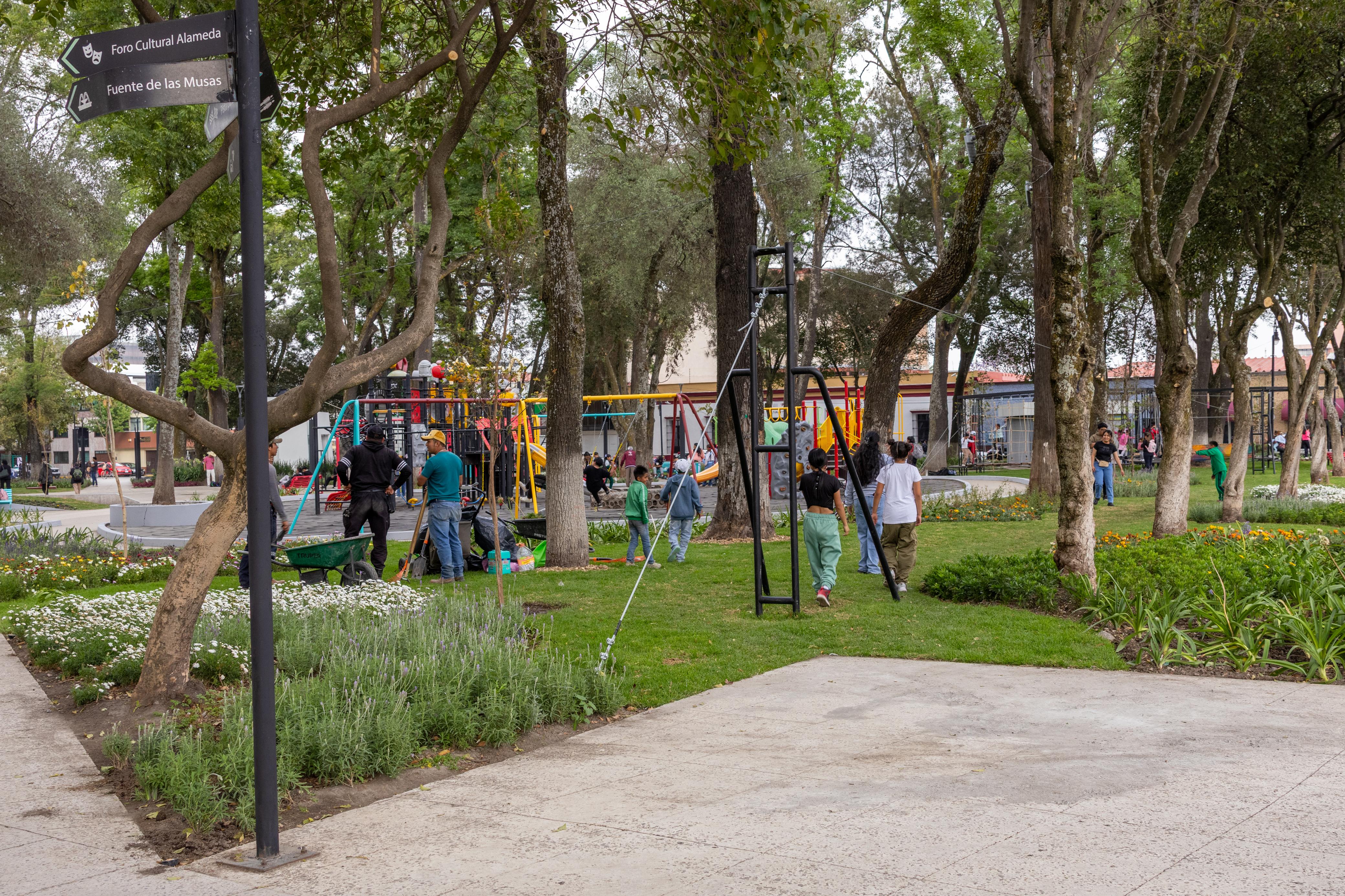 Se complementa con la integración de una biblioteca y un teatro al aire libre, ya existentes, además de servicios básicos renovados que incluyen sanitarios y un laberinto natural, consolidándose así como un punto de encuentro multidisciplinario para las familias toluqueñas.