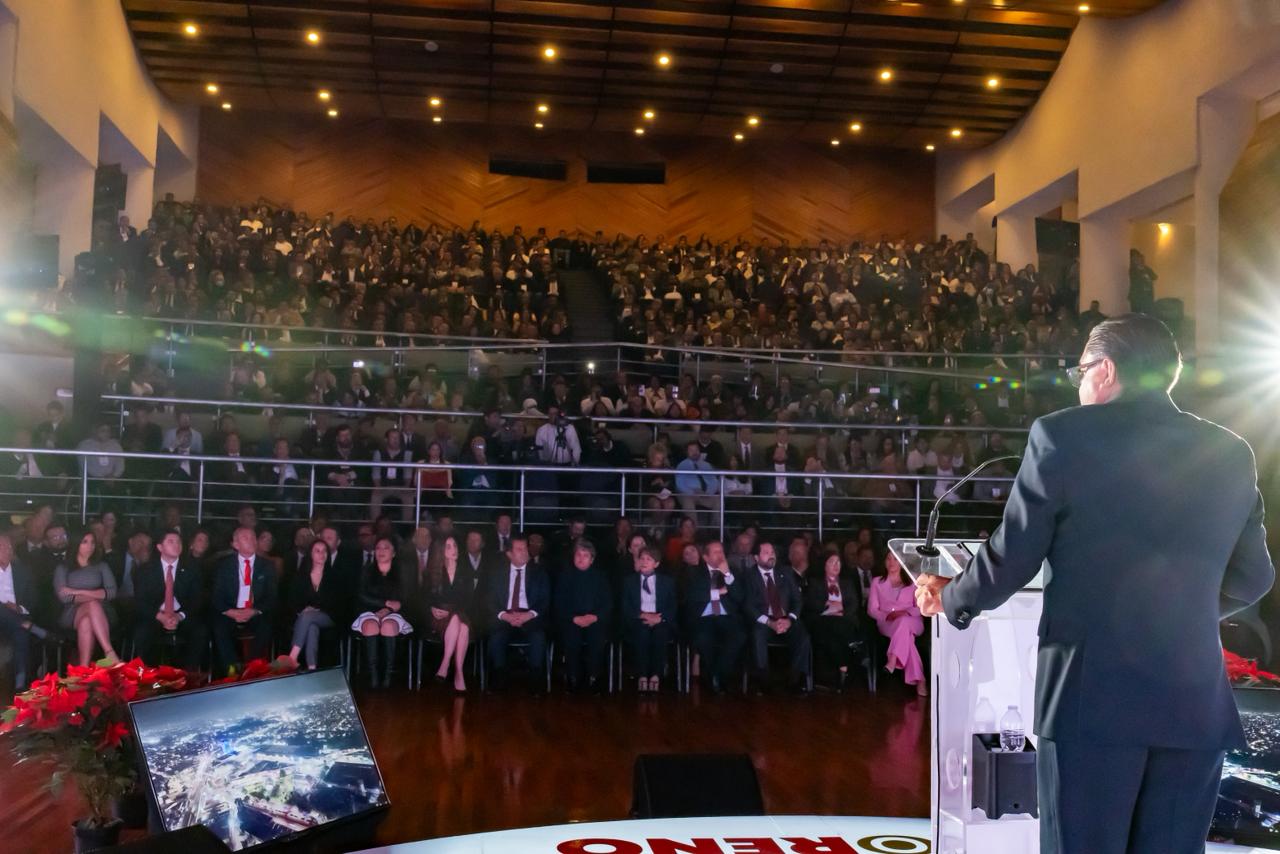 Toluca, Estado de México, 2 de diciembre de 2025.- En la presentación de su Primer Informe de Gobierno, Ricardo Moreno afirmó que su administración mantuvo un ejercicio permanente de austeridad republicana, transparencia y diálogo abierto con la ciudadanía, además de sostener su compromiso público de escuchar todas las voces, incluidas aquellas que son críticas severas.