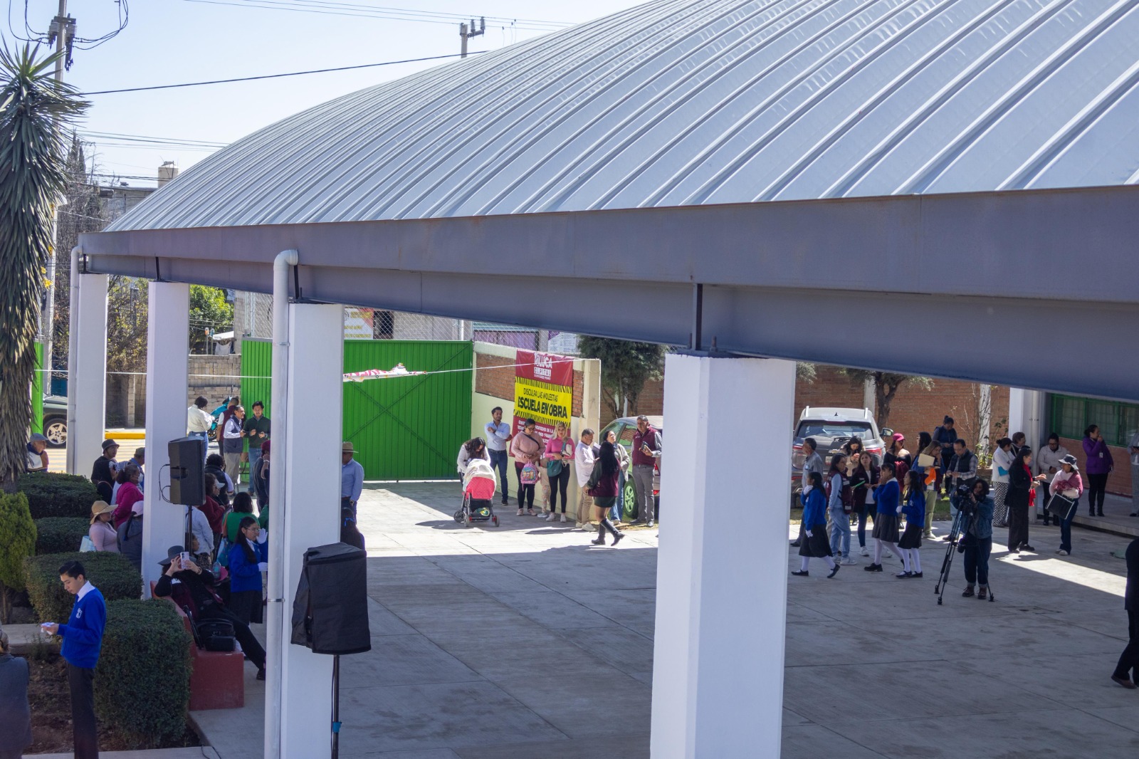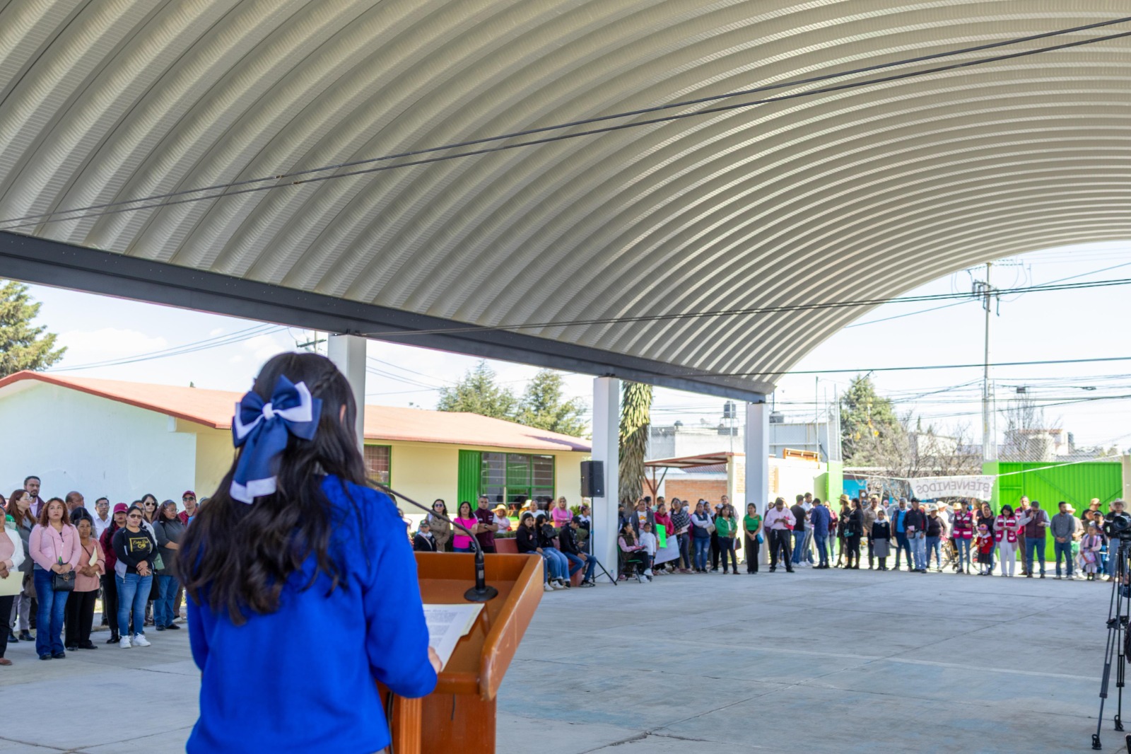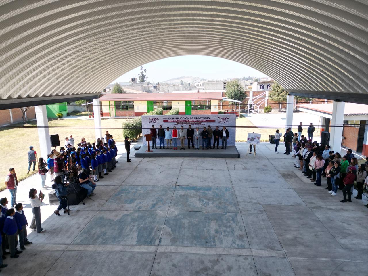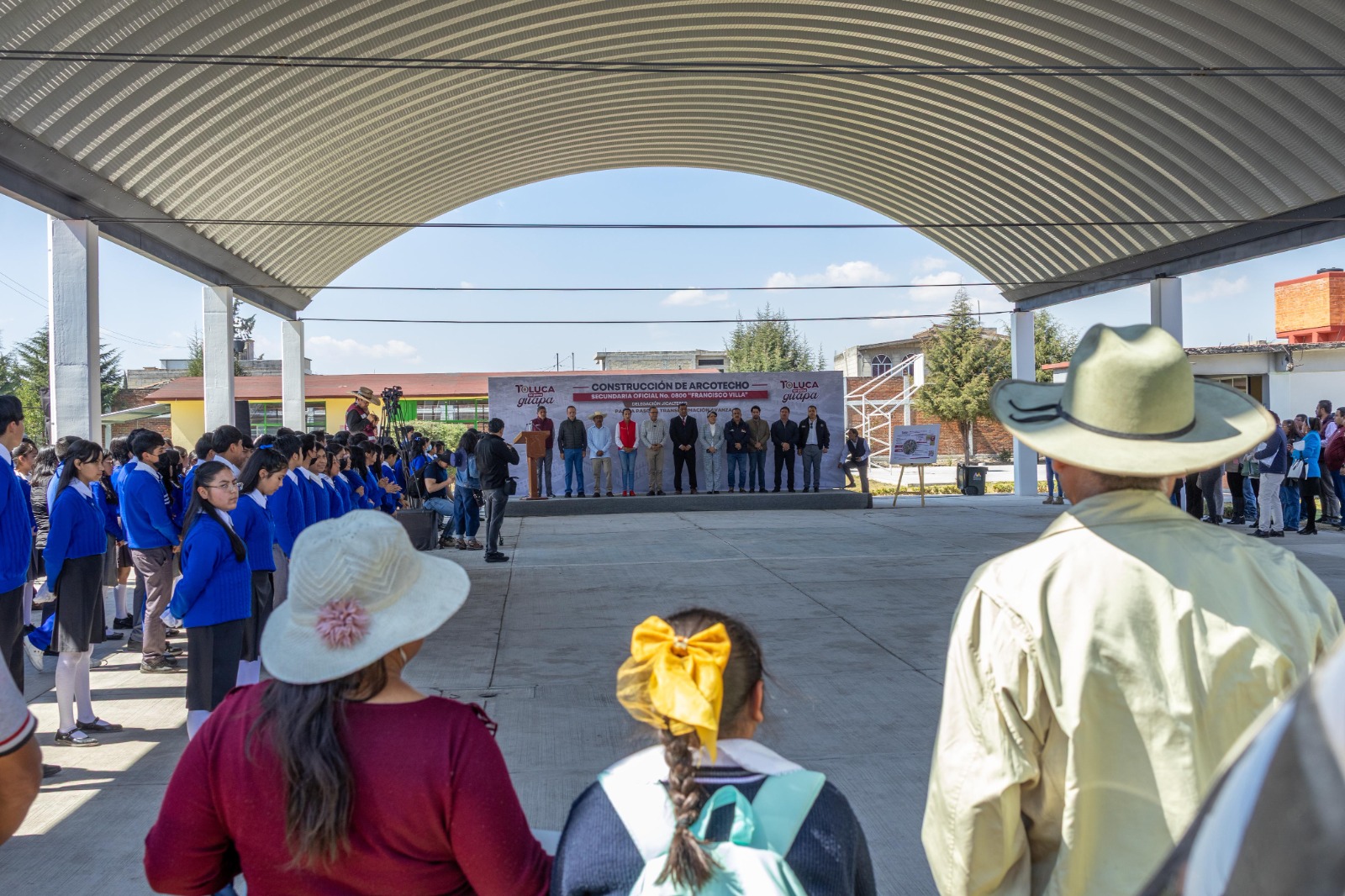 Toluca, Estado de México, 29 de enero de 2026.- El Presidente Municipal, Ricardo Moreno, continúa cumpliendo sus compromisos con la población y entrega nuevo arcotecho en la Escuela Secundaria Oficial No. 0800 Francisco Villa de Jicaltepec Cuexcontitlán, que la transforma en un espacio digno, seguro y multifuncional para 117 estudiantes, que fortalecerán su formación académica, deportiva, cultural y comunitaria.