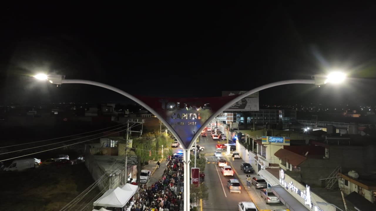 En San Mateo Otzacatipan se instalaron 189 luminarias y botones de pánico conectados directamente al Centro de Mando de seguridad pública en la ciudad, fortaleciendo la vigilancia y la respuesta inmediata ante emergencias; en Filiberto Navas, en San Mateo Oxtotitlán, se colocaron 78 luminarias y cámaras de videovigilancia, brindando protección a más de 45 mil mujeres que transitan cada día por esta zona, que conecta a varias delegaciones del municipio.